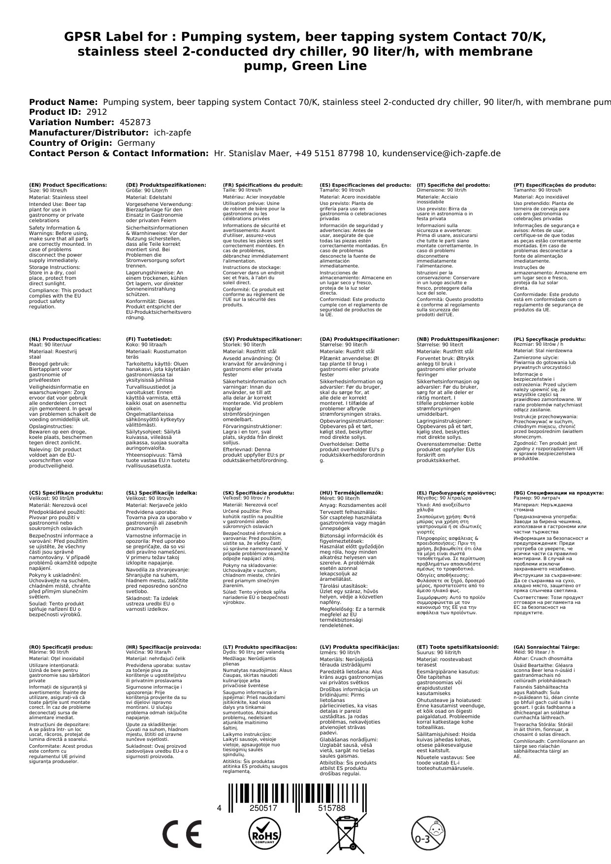 Stellen Sie eine Frage, um mehr über das Produkt zu erfahrenBierzapfanlage Kontakt 70/K 2-Leitungen Edelstahlausführung, 90 L/h mit Membranpumpe