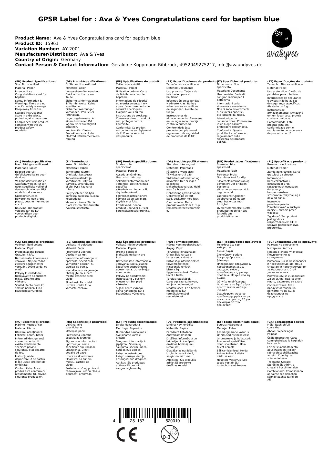 Sollte die Karte zum Zeitpunkt Ihrer Bestellung nicht bei uns lagernd sein, bestellen wir sofort bei Ava & Yves nach. Die aktuelle Lieferzeit sehen Sie weiter oben.