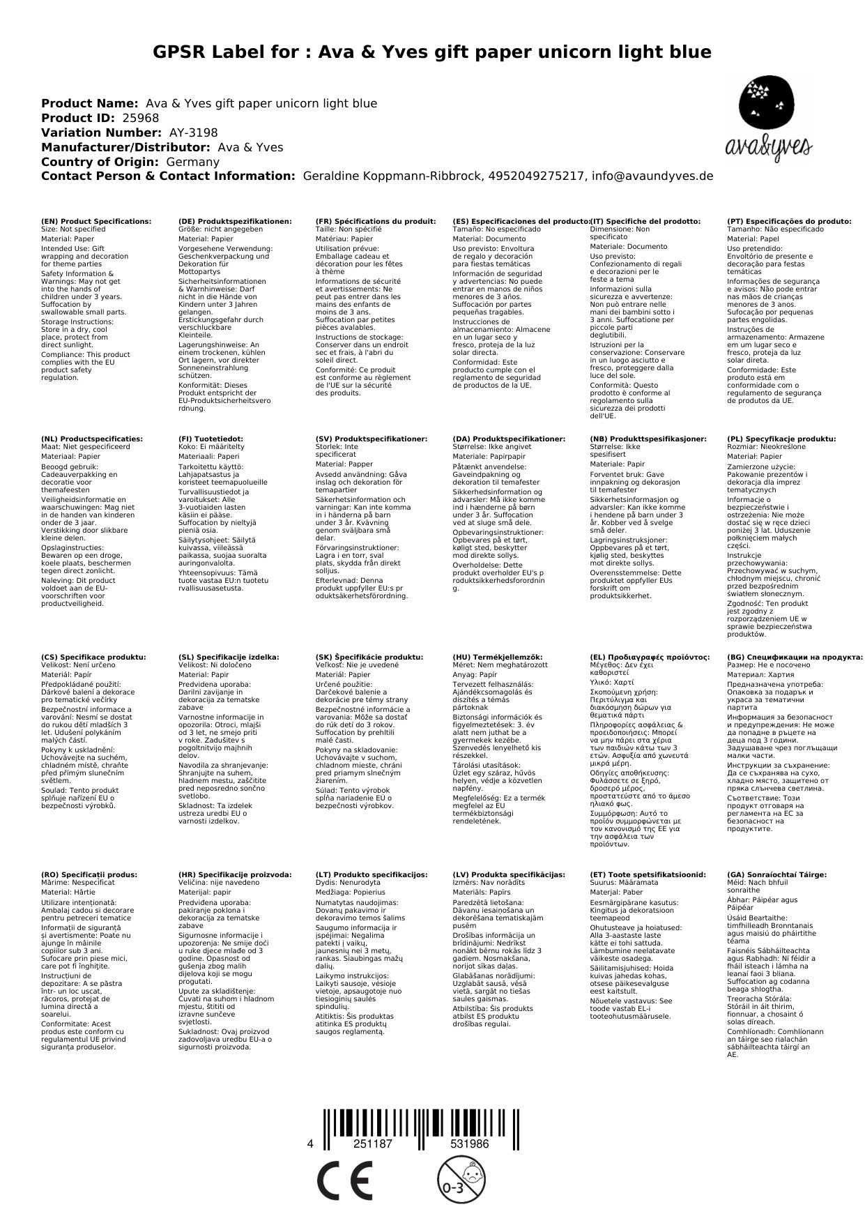 Stellen Sie eine Frage, um mehr über das Produkt zu erfahrenAva & Yves Geschenkpapier Einhorn hellblau