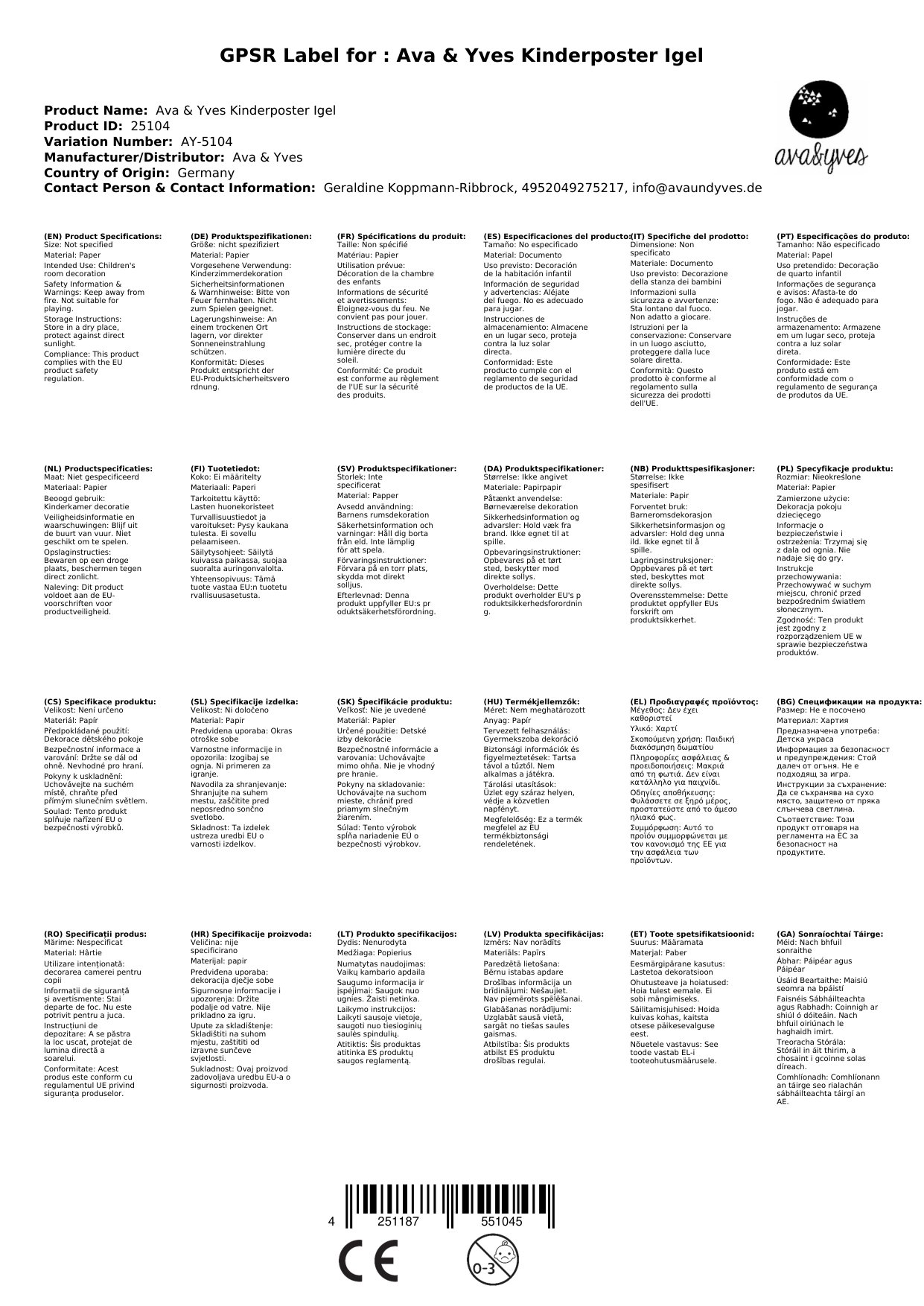 Ava & Yves Kinderposter Igel