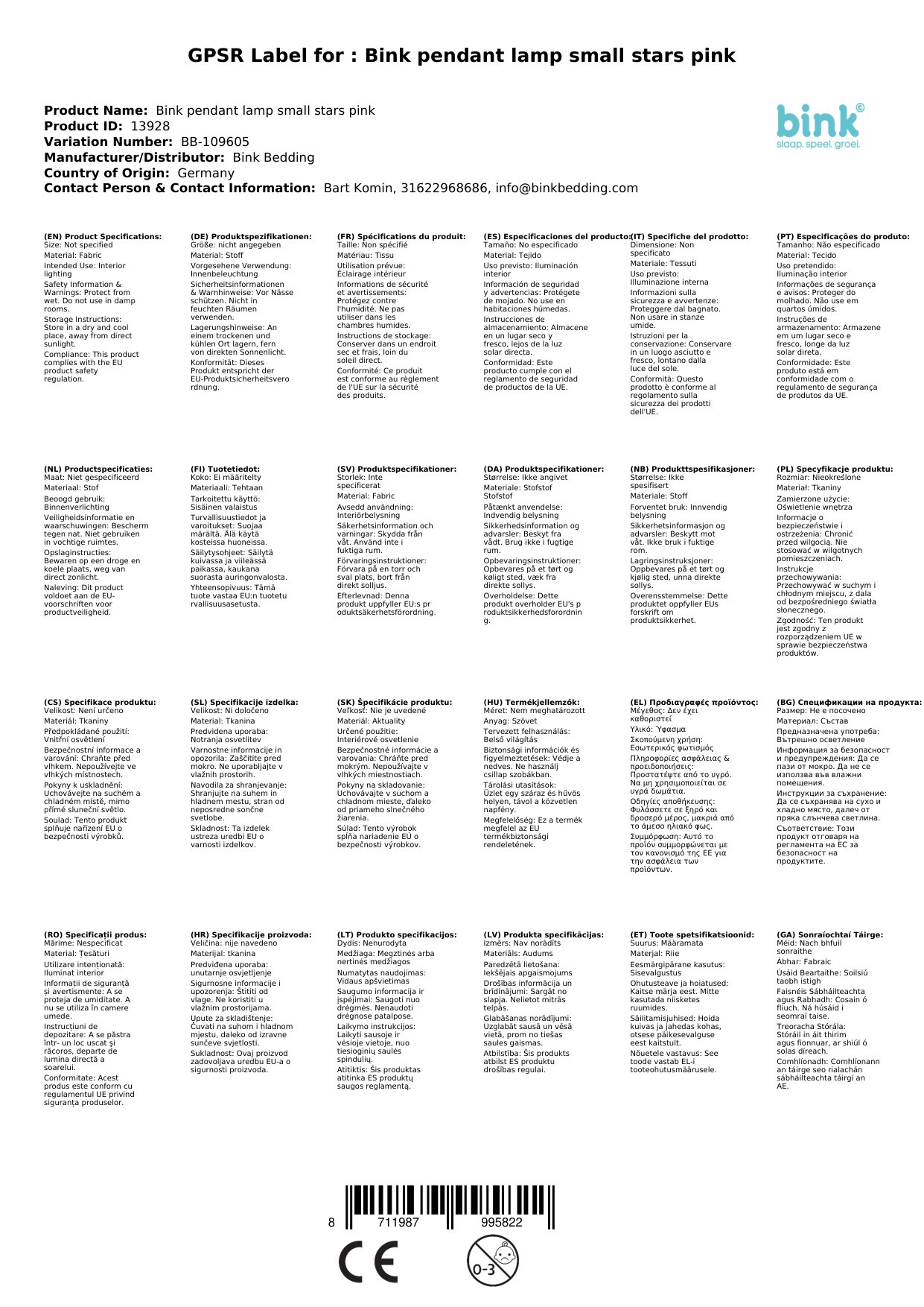 | Marke | Bink Bedding |