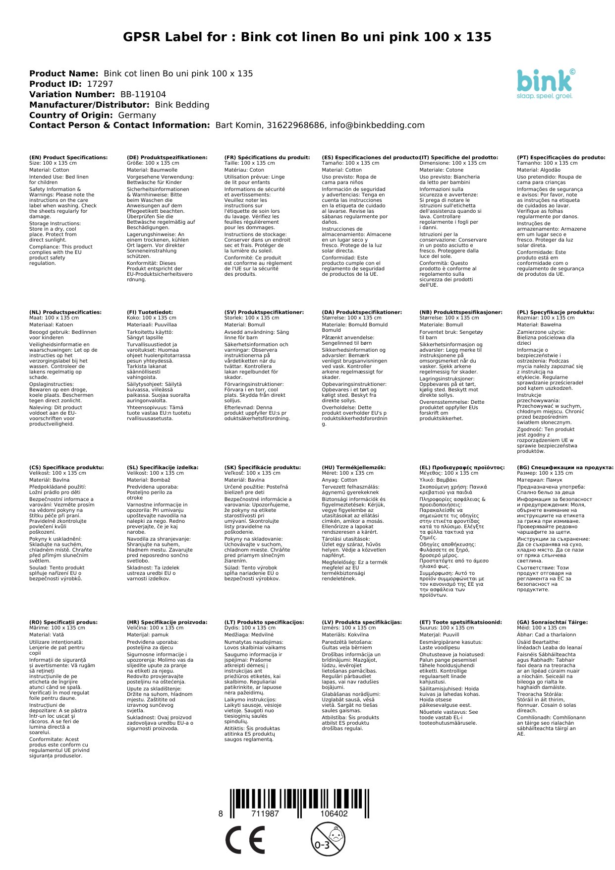 | Marke | Bink Bedding |