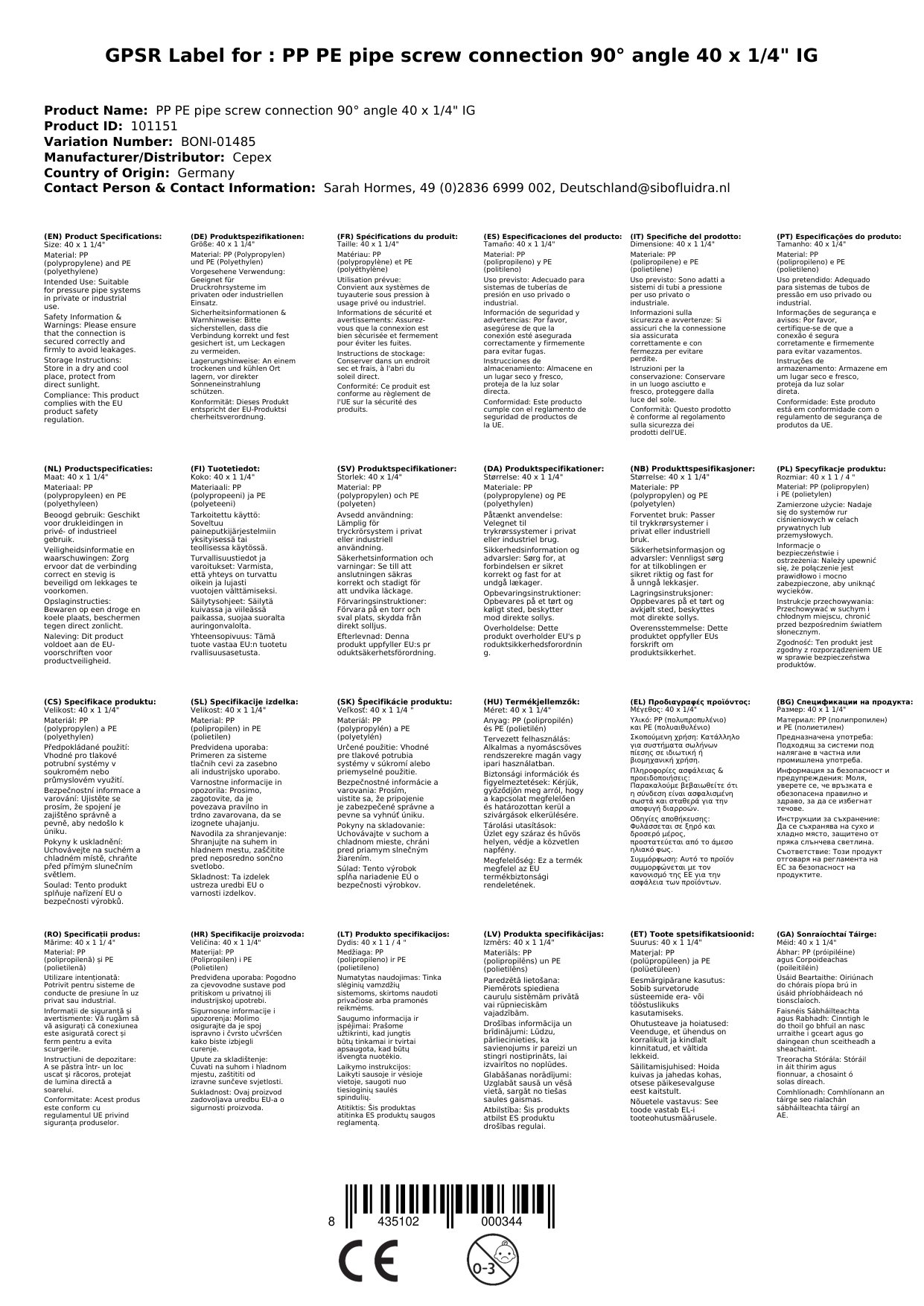 Stellen Sie eine Frage, um mehr über das Produkt zu erfahrenPP PE Rohr Verschraubung 90° Winkel 40 x 1 1/4" IG