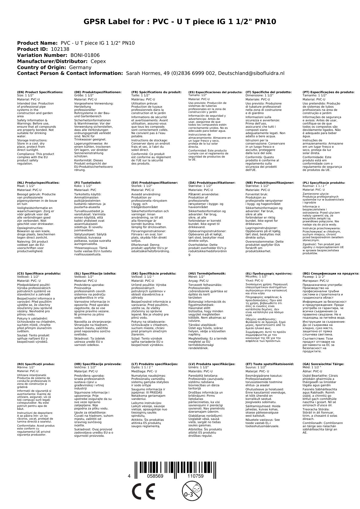 Die maximale Betriebstemperatur für dieses PVC T-Stück beträgt 60°C.