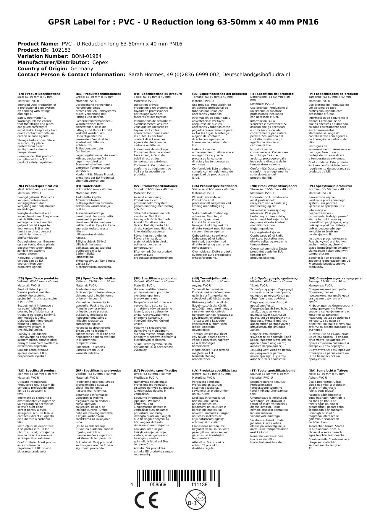 PVC Fitting Reduzierung lang, 63-50mm x 40mm, PN16