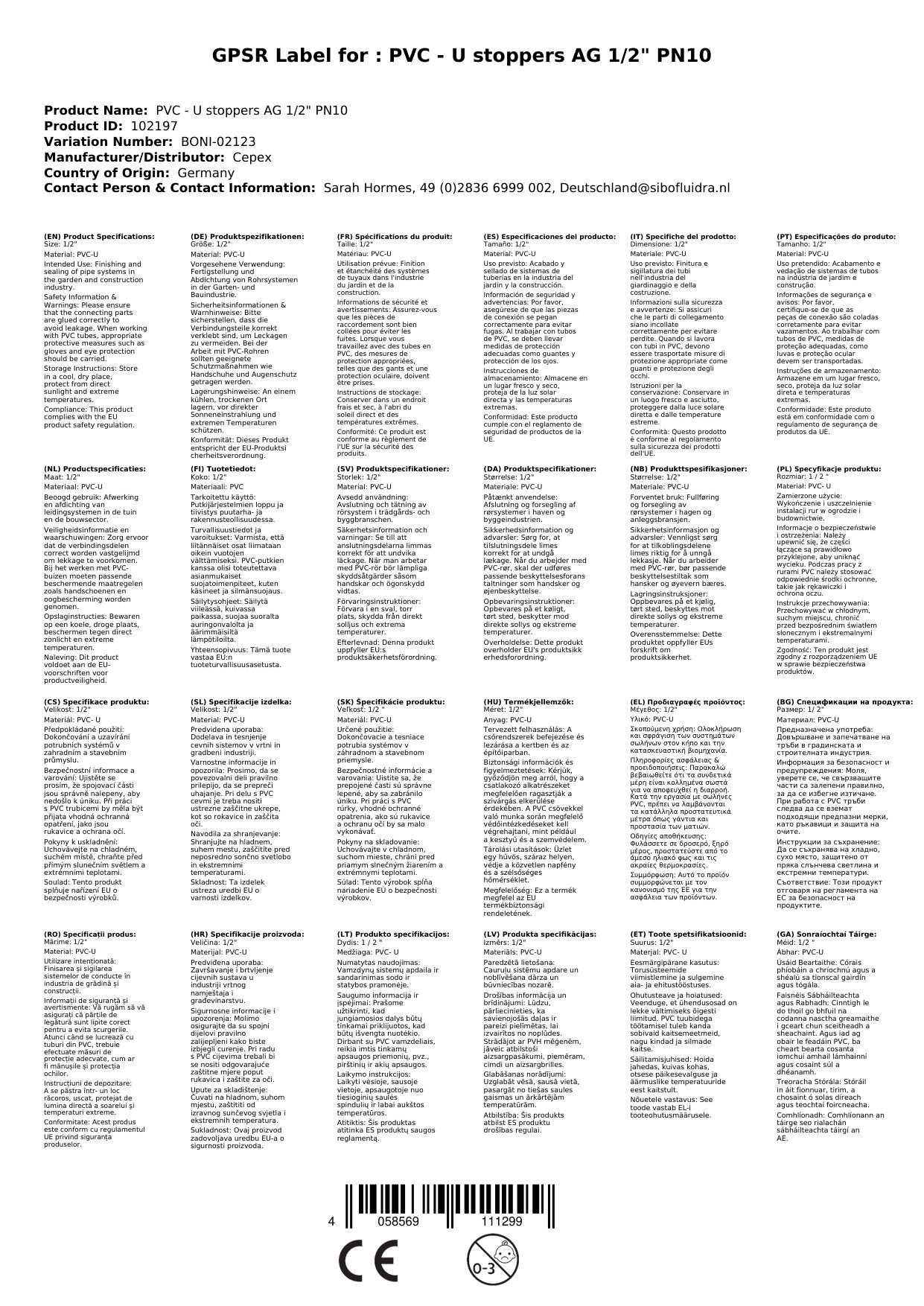 Stellen Sie eine Frage, um mehr über das Produkt zu erfahrenPVC - U Stopfen AG 1/2" PN10