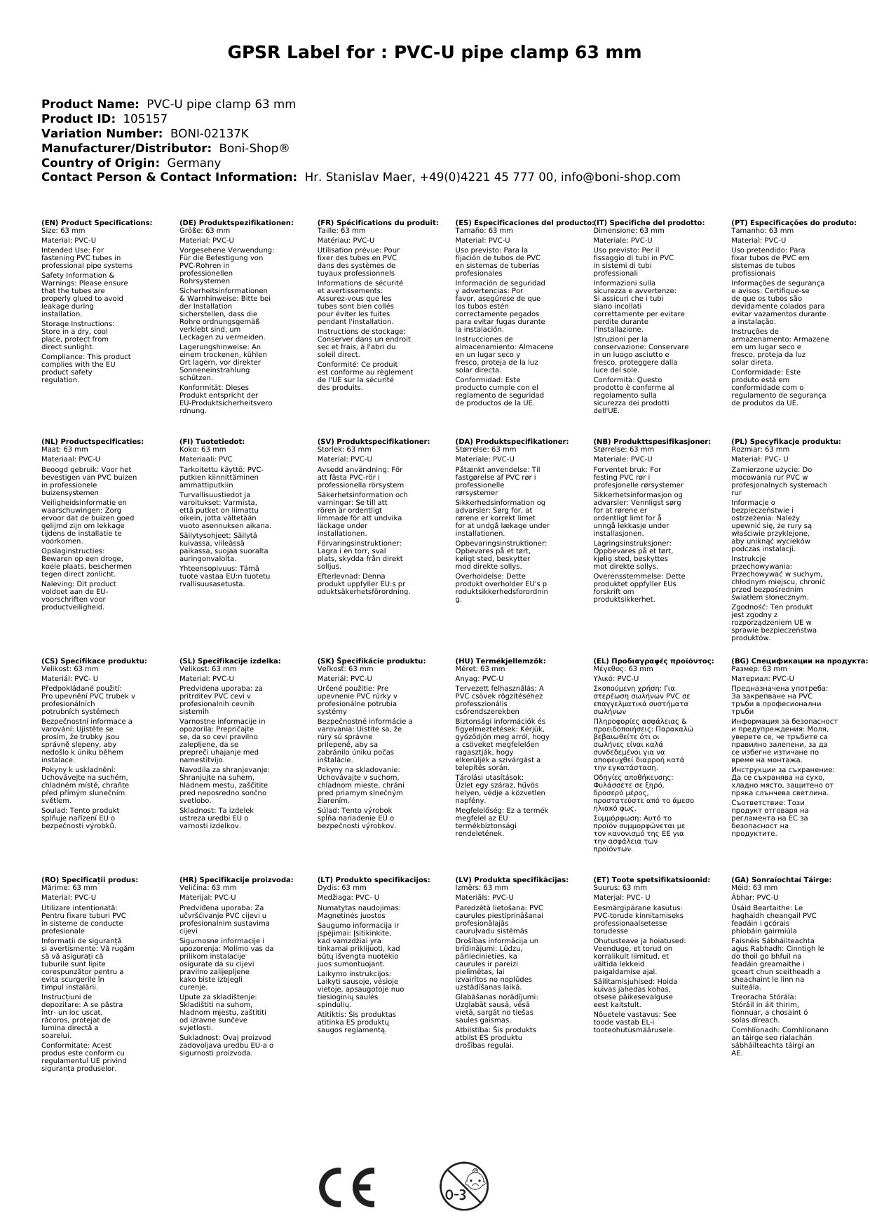 Stellen Sie eine Frage, um mehr über das Produkt zu erfahrenPVC - U Rohrklemme 63 mm