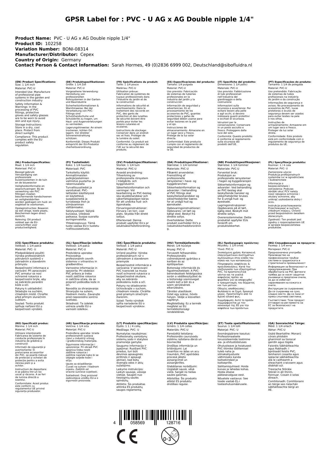 Stellen Sie eine Frage, um mehr über das Produkt zu erfahrenPVC Doppelnippel für Ihre Installationen