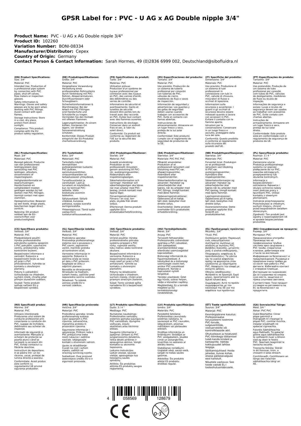 | Material | Hart-PVC / PVC-U / Polyvinylchlorid |