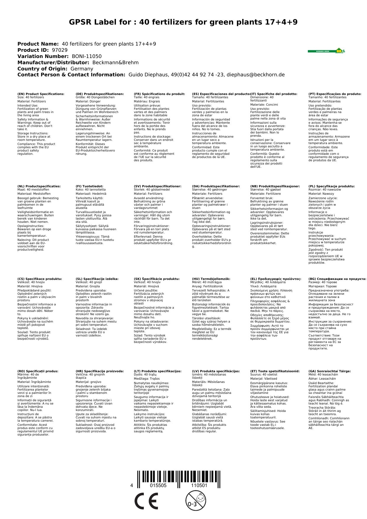 Wie bei allen Düngemitteln sollten die Stäbchen für Kinder und Haustiere unzugänglich aufbewahrt werden. Ein Verzehr größerer Mengen kann gesundheitsschädlich sein.