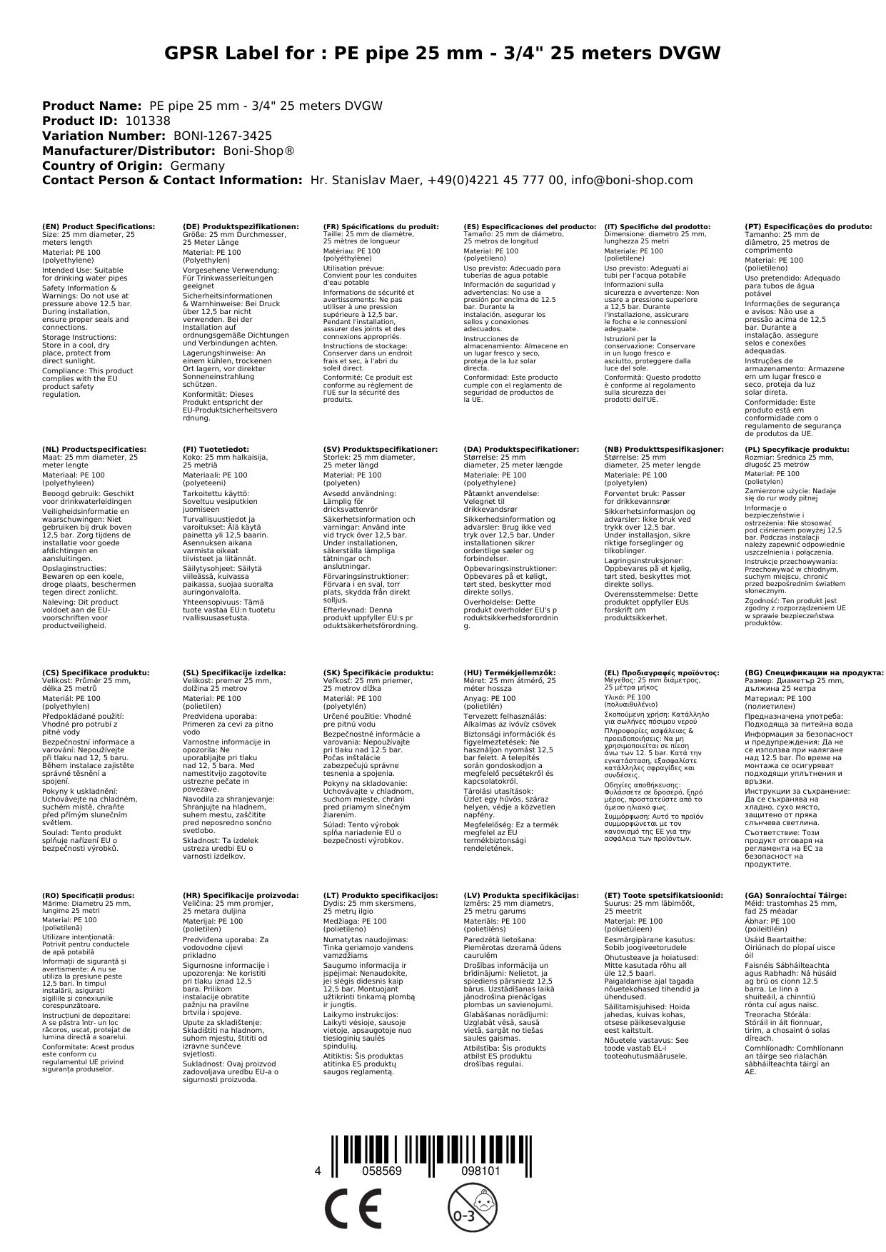 PE Rohr 25mm, 25 Meter, Trinkwasserleitung, DVGW-Zulassung