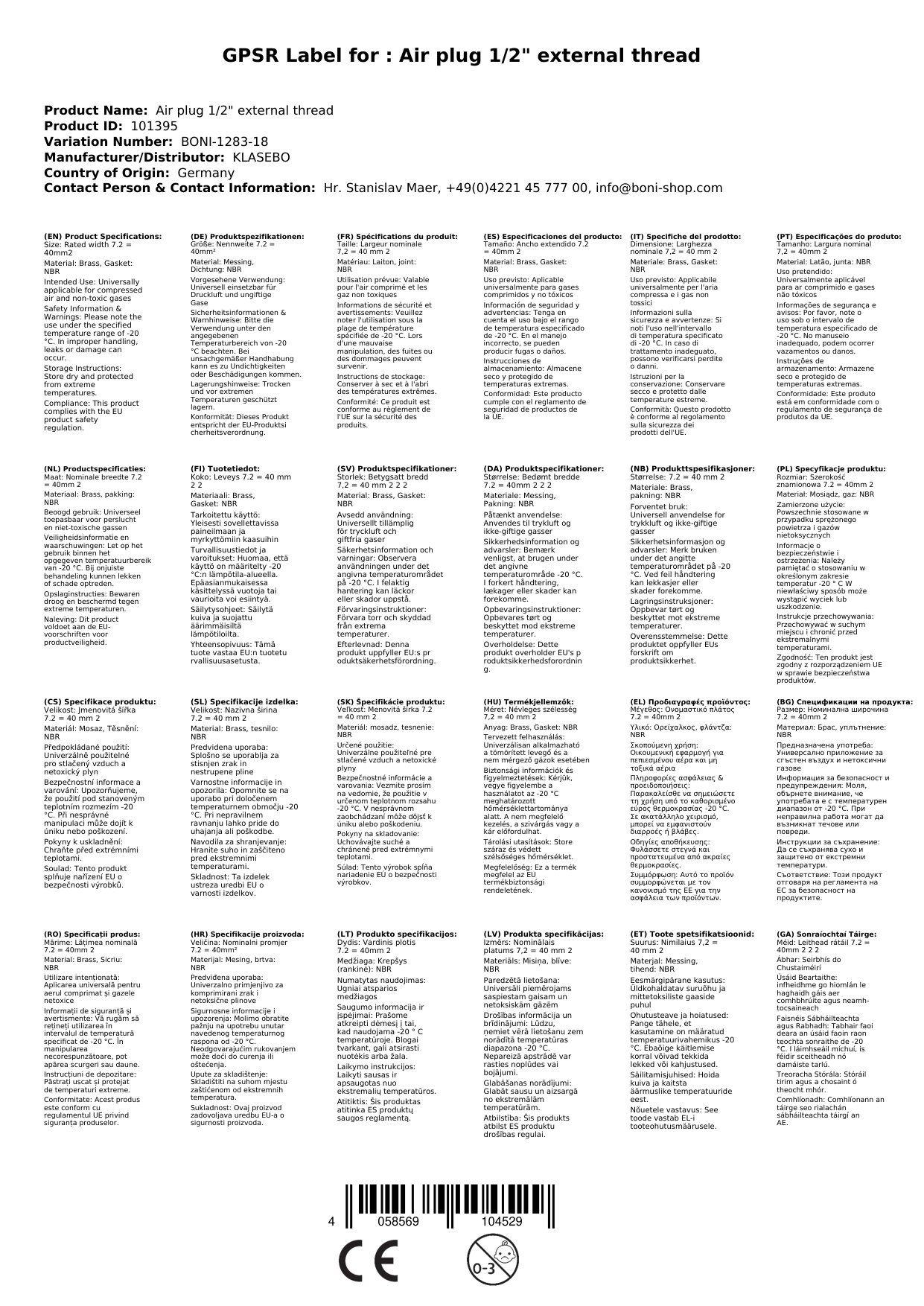 - Material Standardkupplungen: Gewindestück, Ventilkörper, Hülse, Ventil und Stecker aus Messing