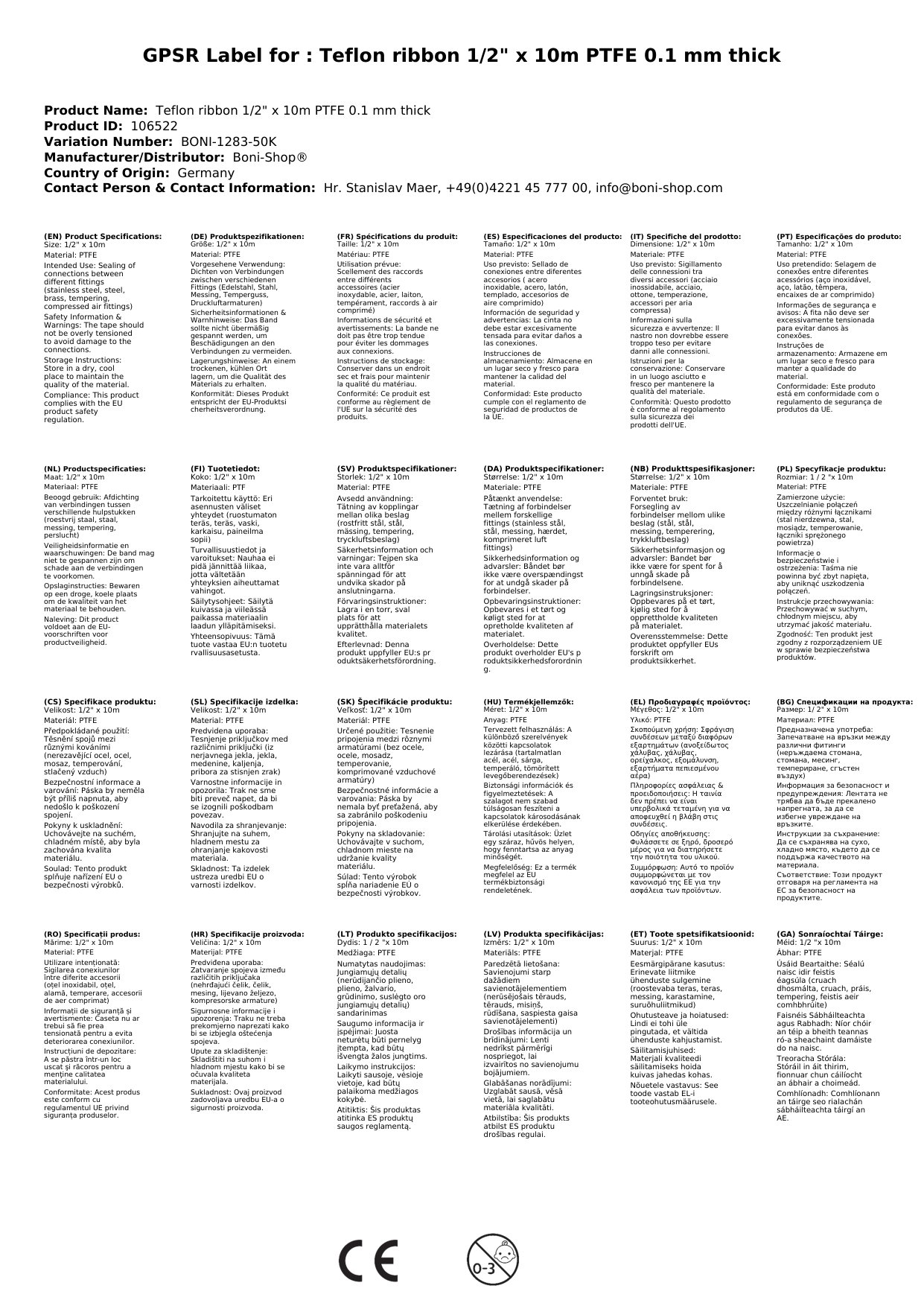 Teflonband 1/2" x 10m PTFE 0,1 mm stark