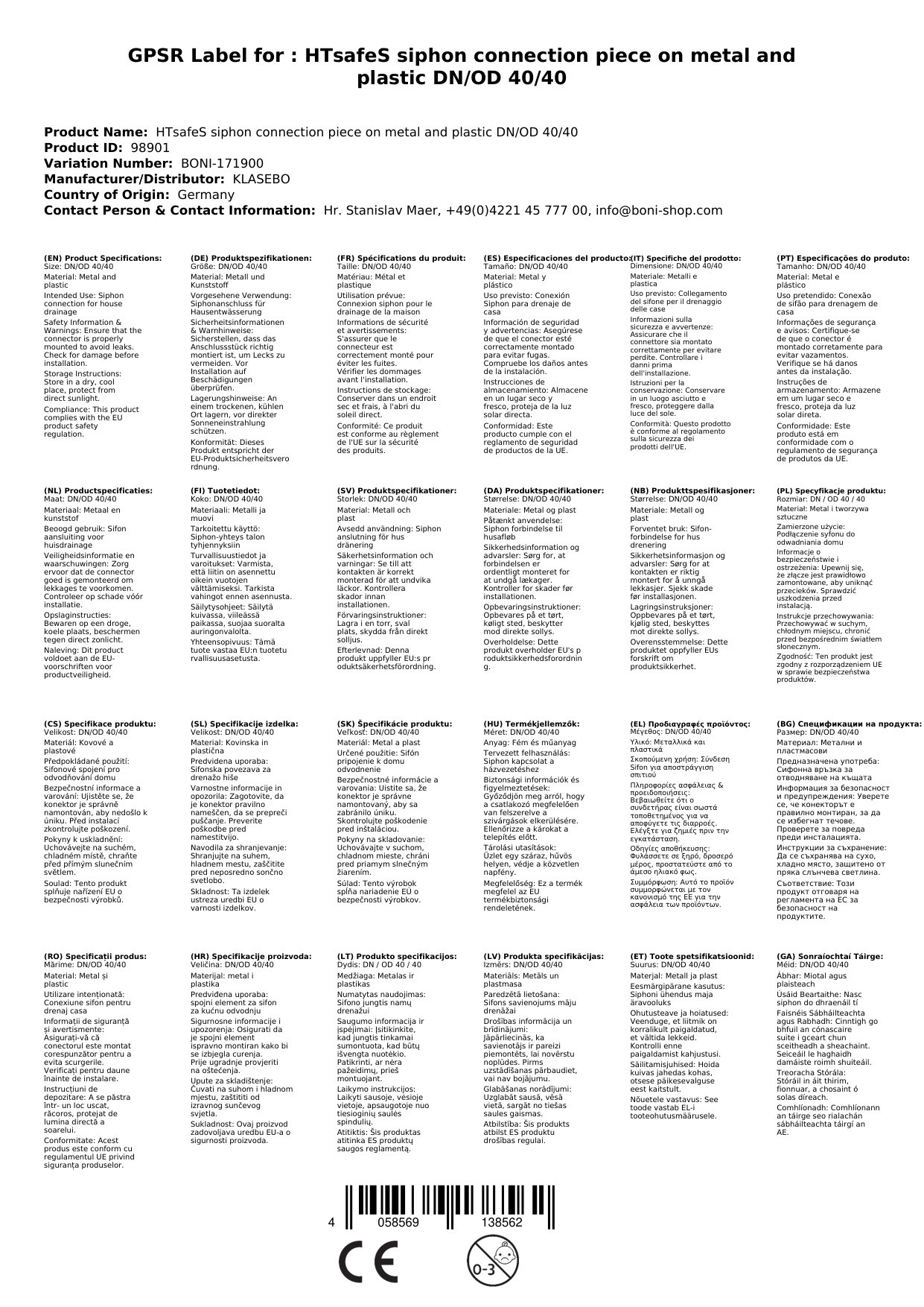HTsafeS Siphonanschlussstück an Metall und Kunststoff DN/OD 40/40