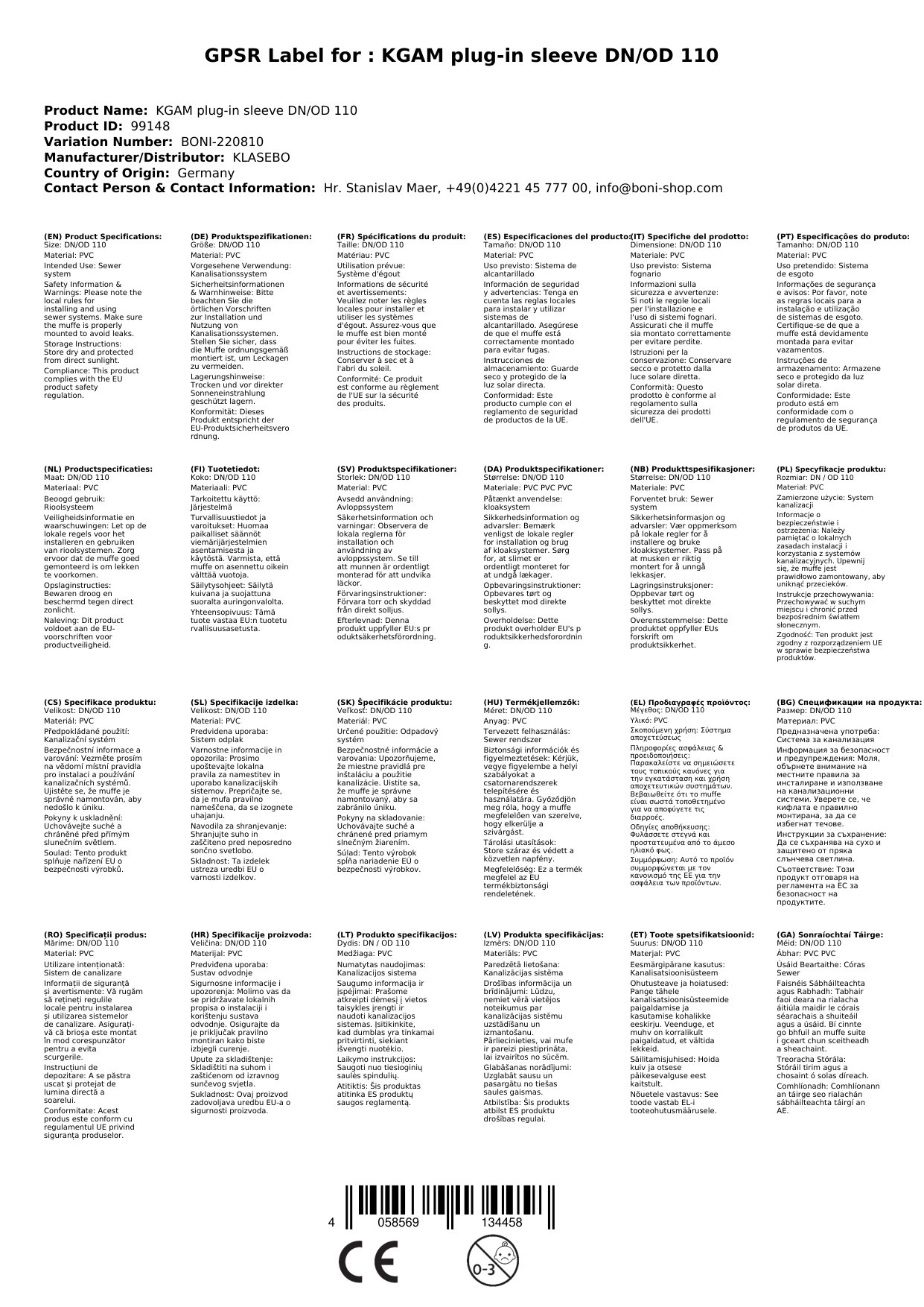 Die Muffe ist speziell für KG Rohre DN/OD 110 konzipiert. Bitte prüfe die Kompatibilität mit anderen Systemen vor der Verwendung.