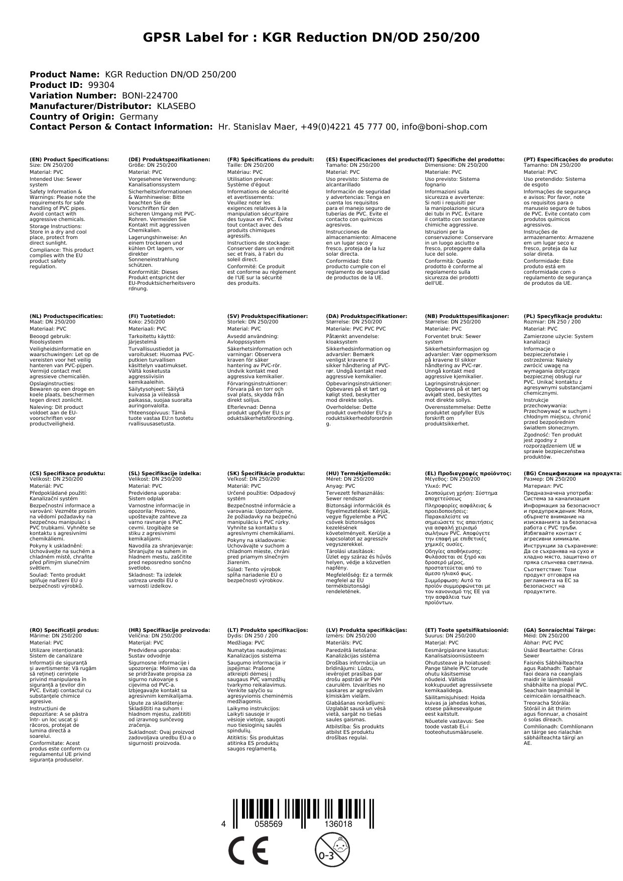 - Langlebigkeit: Dank des hochwertigen PVC-U Materials ist die KGR Reduktion extrem langlebig und widerstandsfähig gegenüber Umwelteinflüssen und aggressiven Abwässern.