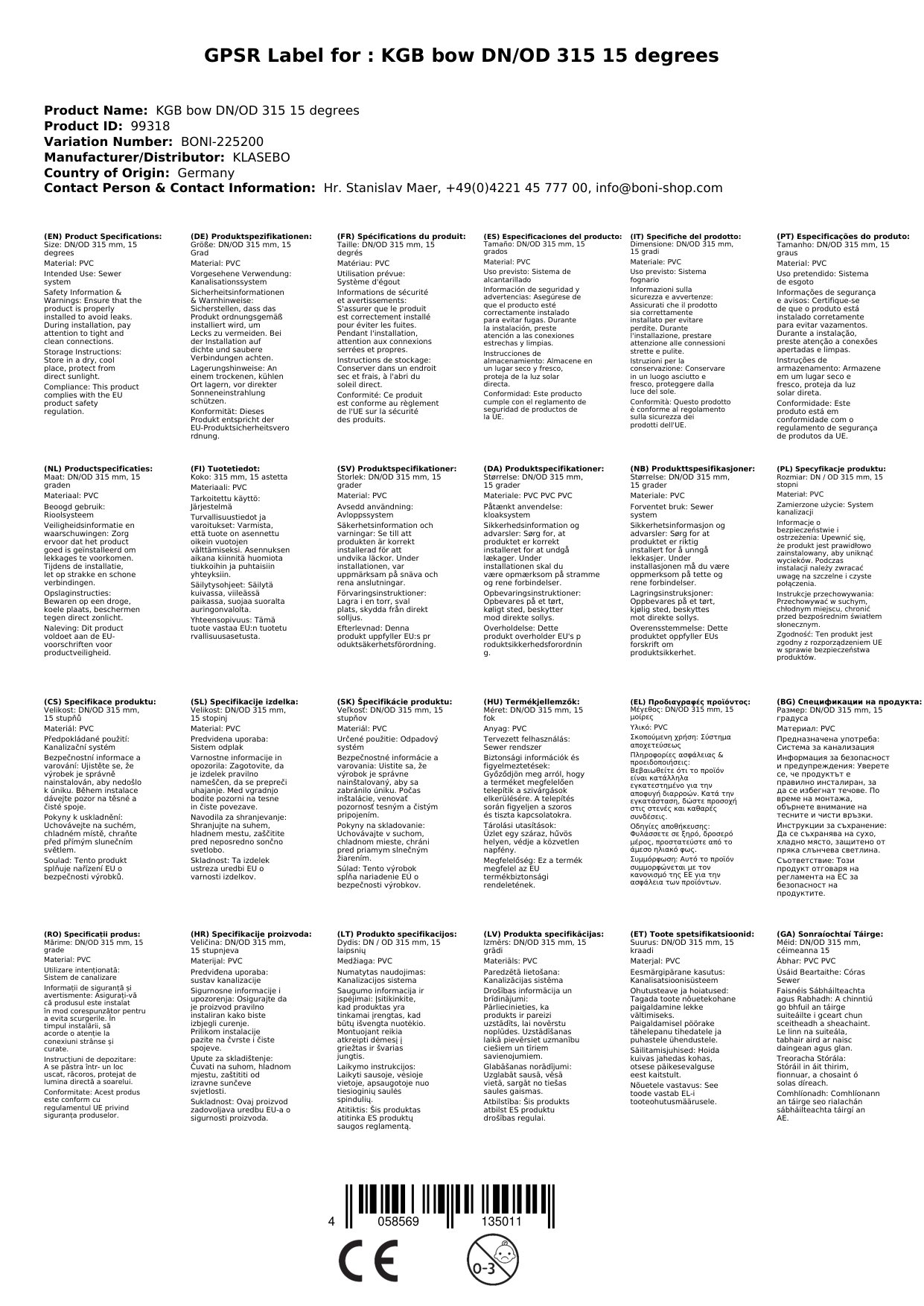 Stellen Sie eine Frage, um mehr über das Produkt zu erfahrenKGB Bogen DN/OD 315 15 Grad