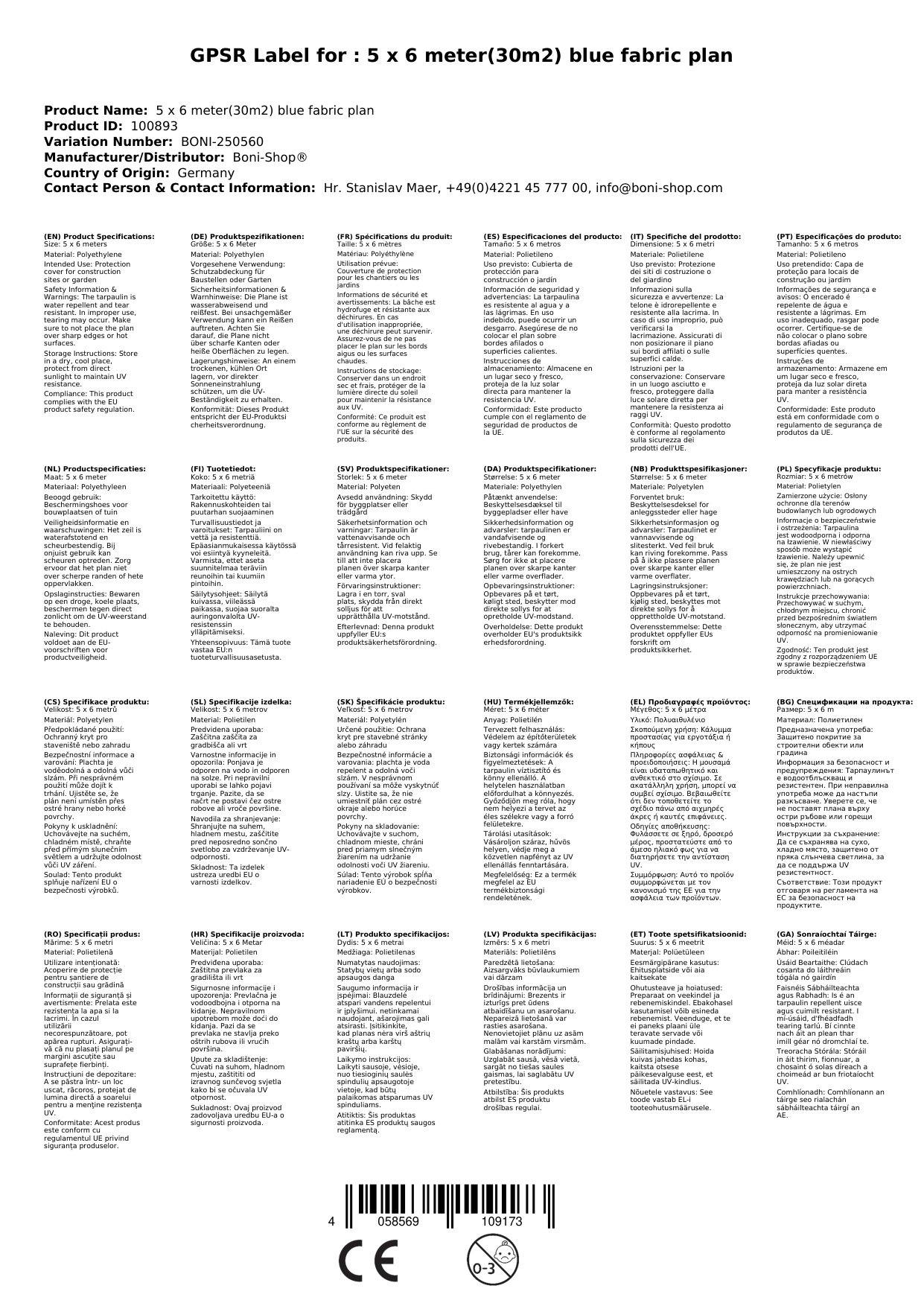 Gewebeplane 5x6m (30m²) blaue, Abdeckplane wasserdicht, reißfest und UV-beständig