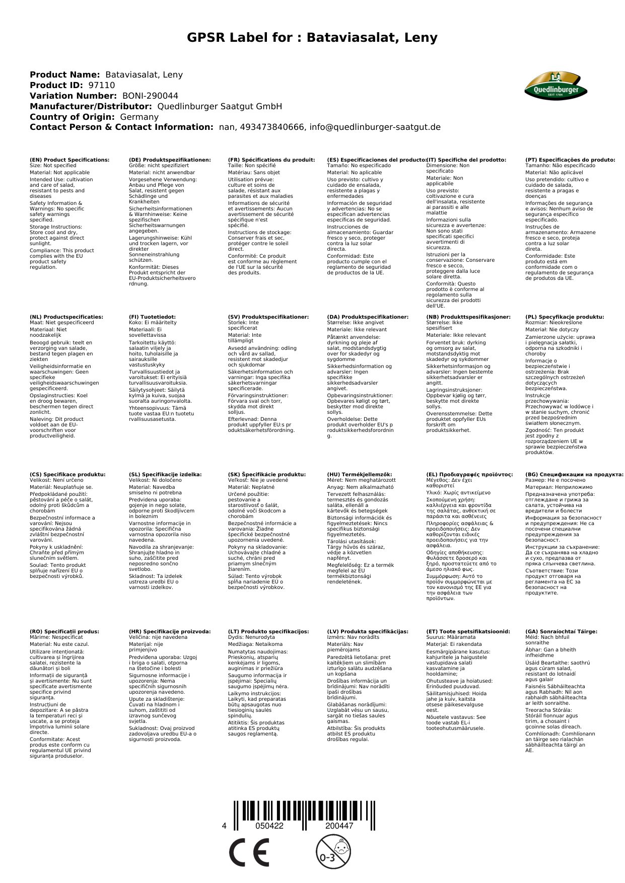 | Brand | Quedlinburger |