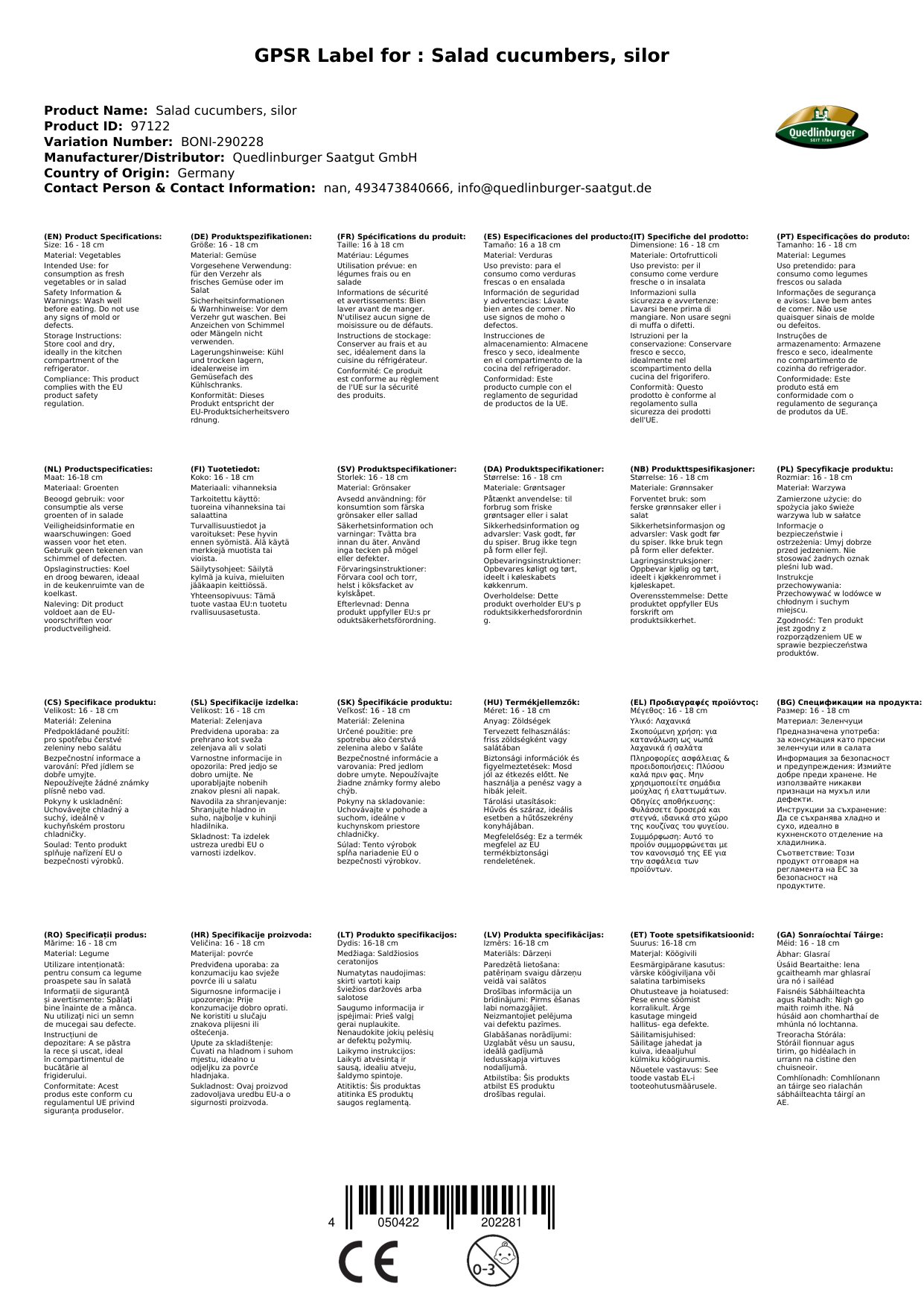 | Brand | Quedlinburger |