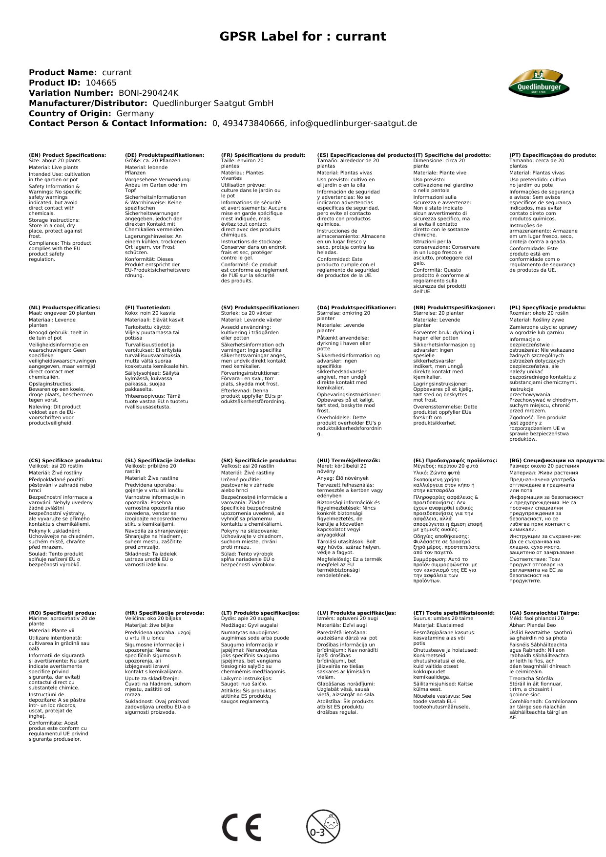 | Brand | Quedlinburger Saatgut GmbH |