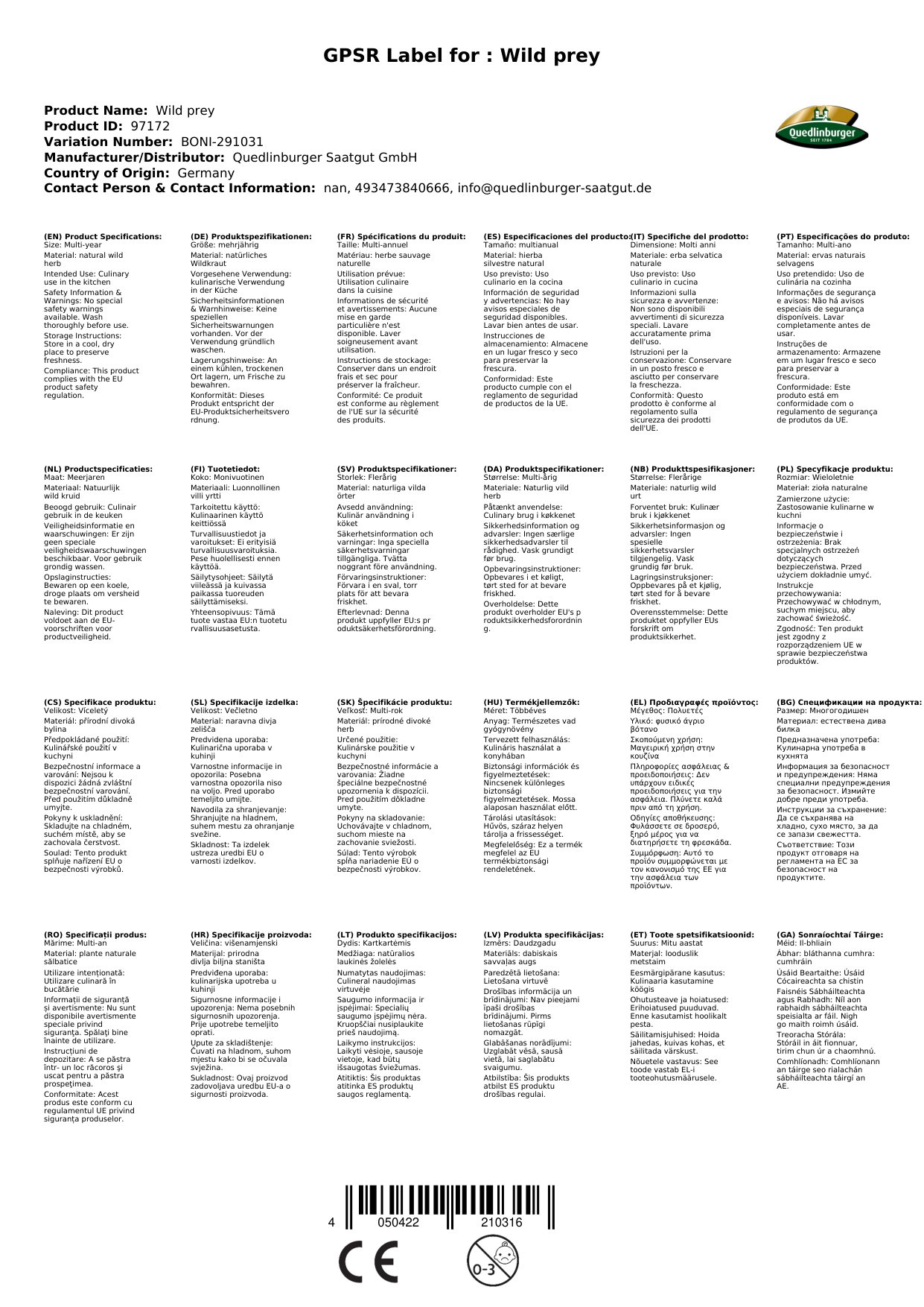 | Brand | Quedlinburger |