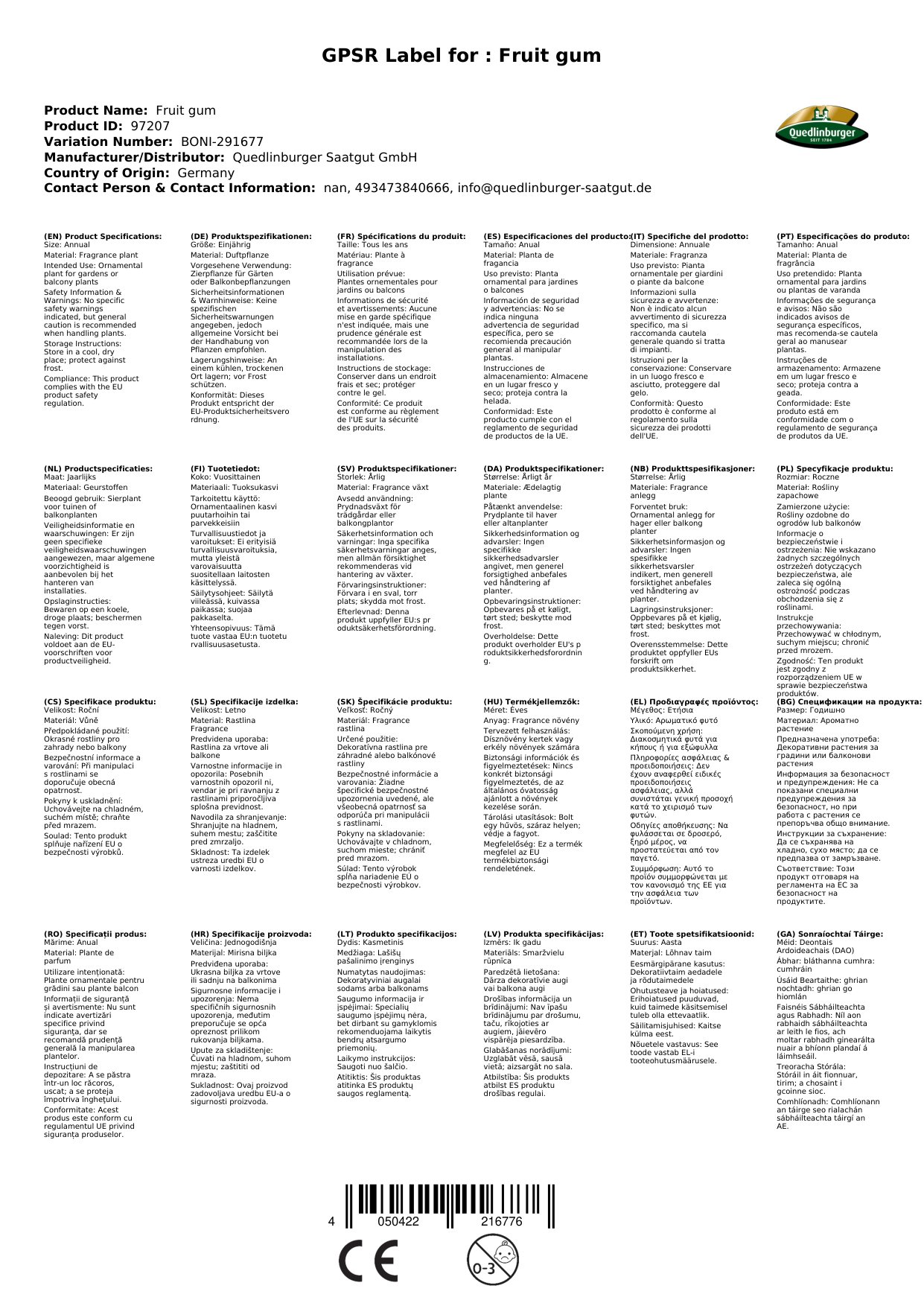 | Brand | Quedlinburger |