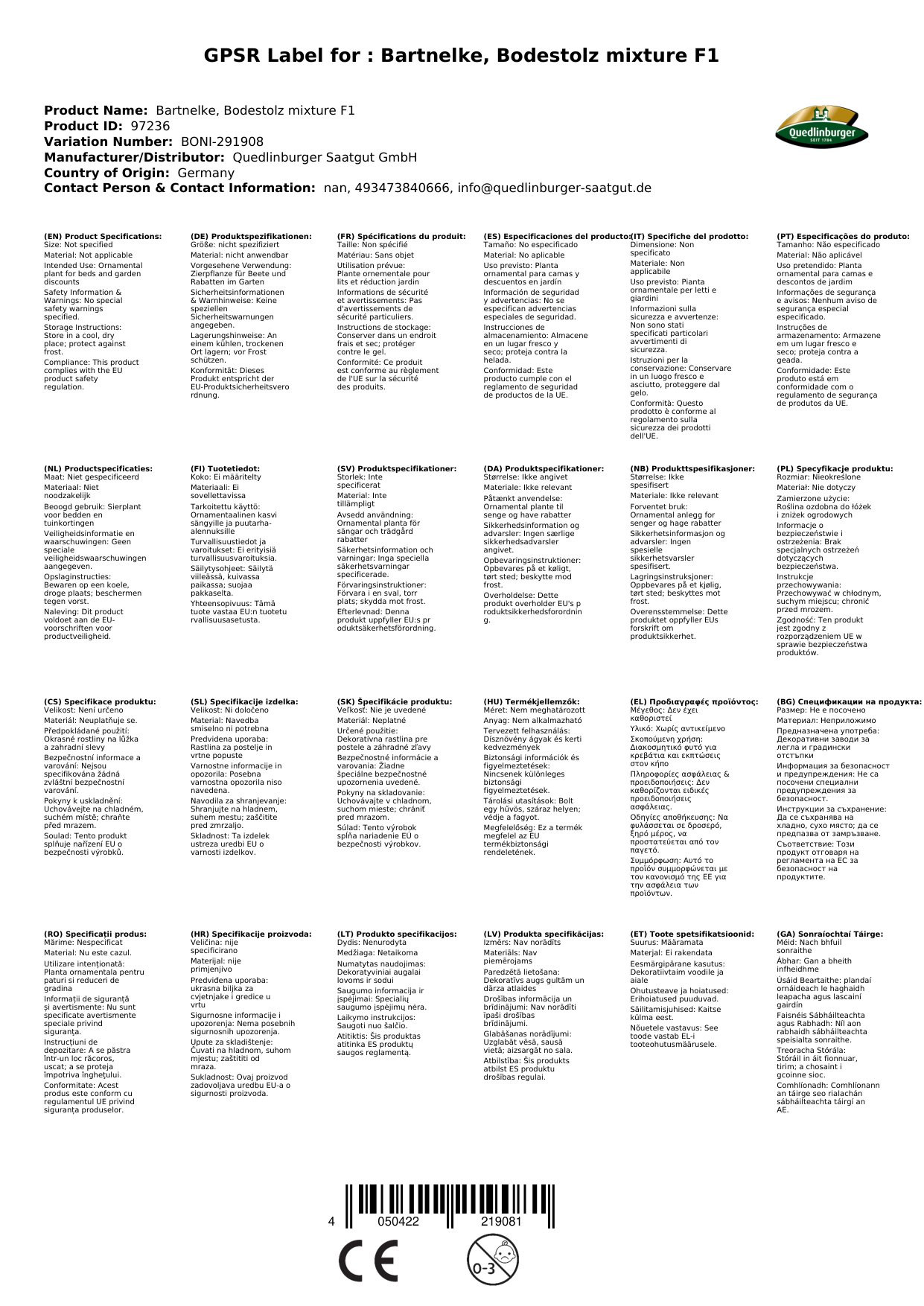| Brand | Quedlinburger |