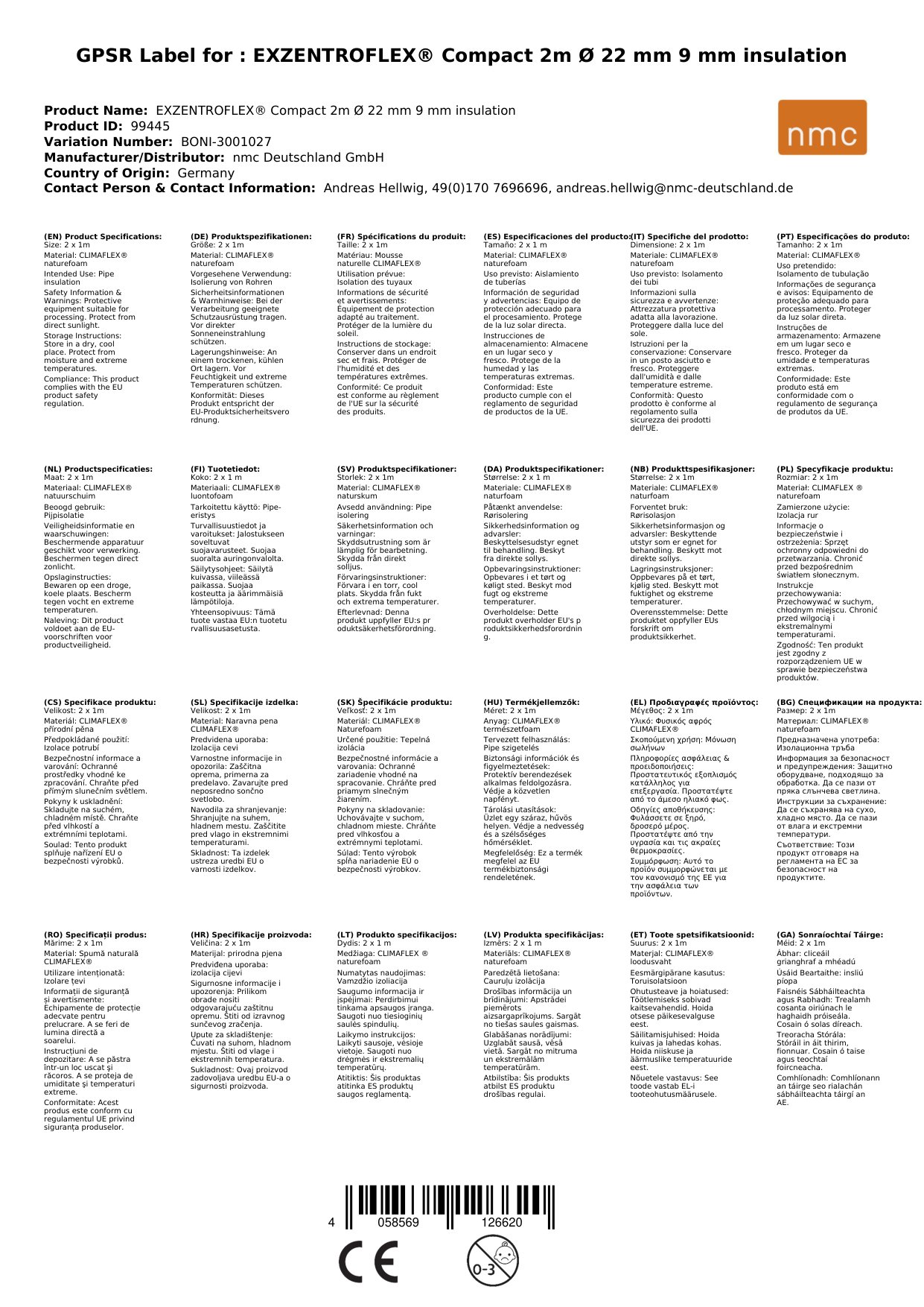 Stellen Sie eine Frage, um mehr über das Produkt zu erfahrenCLIMAFLEX® naturefoam exzentro 2m Ø 22 mm x 9 mm Dämmung