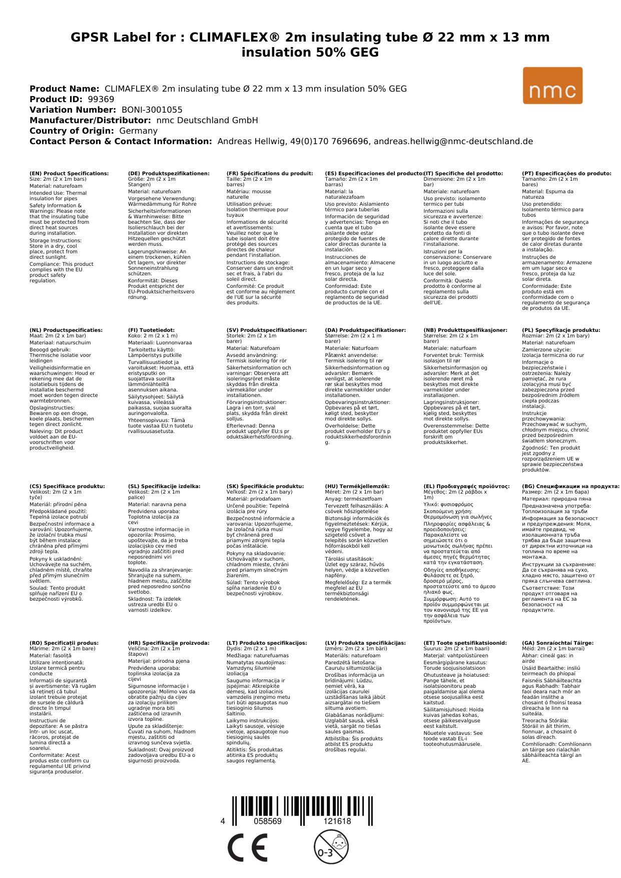 Stellen Sie eine Frage, um mehr über das Produkt zu erfahrenCLIMAFLEX® naturefoam 2m Isolierschlauch Ø 22 mm x 13 mm Dämmung 50% GEG