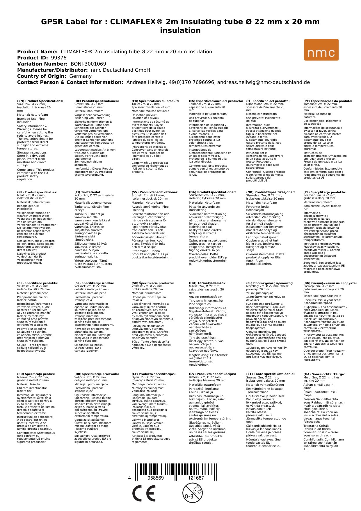 Stellen Sie eine Frage, um mehr über das Produkt zu erfahrenCLIMAFLEX® naturefoam 2m Isolierschlauch Ø 22 mm x 20 mm Dämmung
