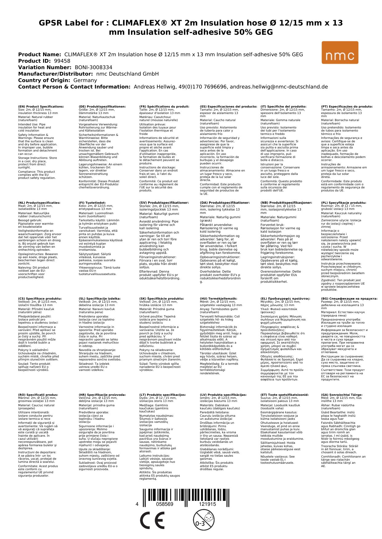 CLIMAFLEX® XT ist ein flexibler Dämmstoff aus geschäumtem, geschlossenzelligem Polyethylen aus NMC Naturefoam® mit einem Anteil von mindestens 50 % nachwachsenden Rohstoffen, ausgestattet mit beidseitig selbstklebendem Verschlusssystem.