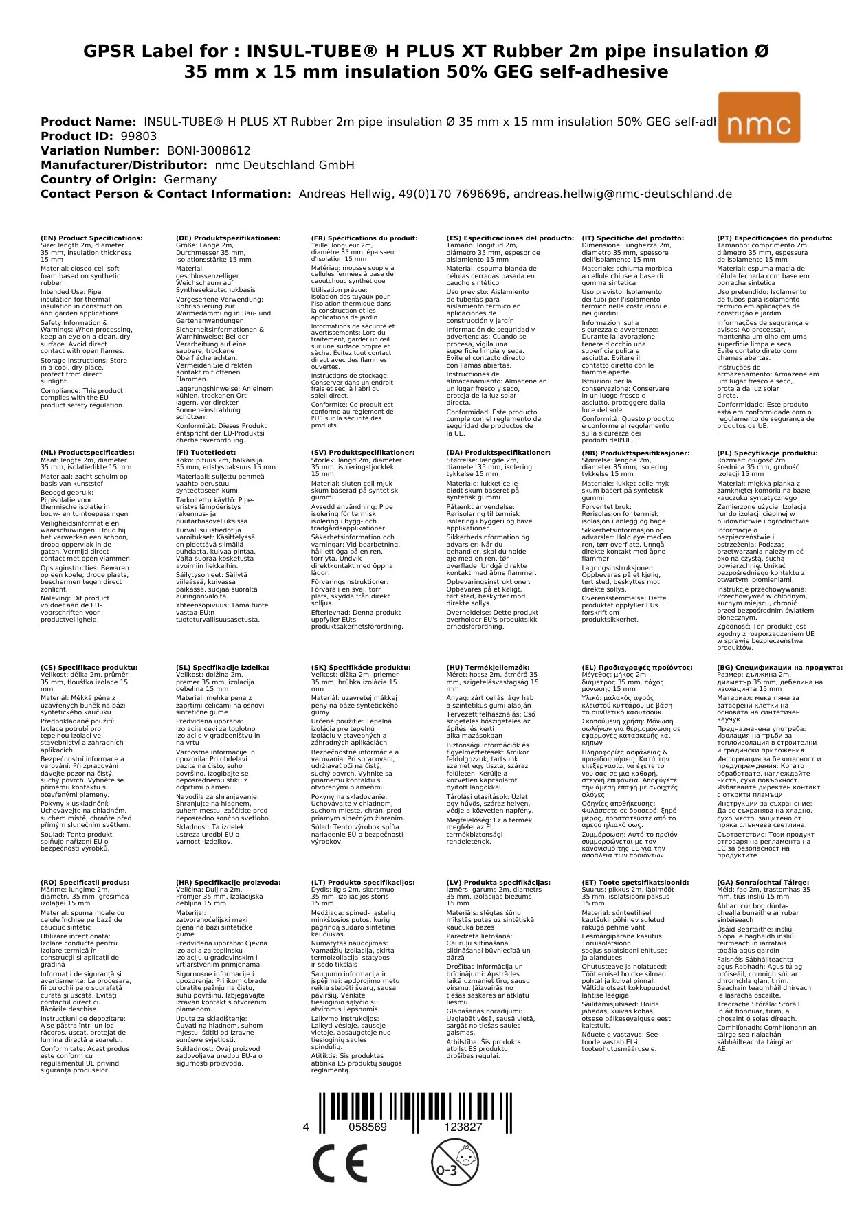 INSUL-TUBE® H PLUS XT Kautschuk 2m Rohrisolierung Ø 35 mm x 15 mm Dämmung 50% GEG selbstklebend