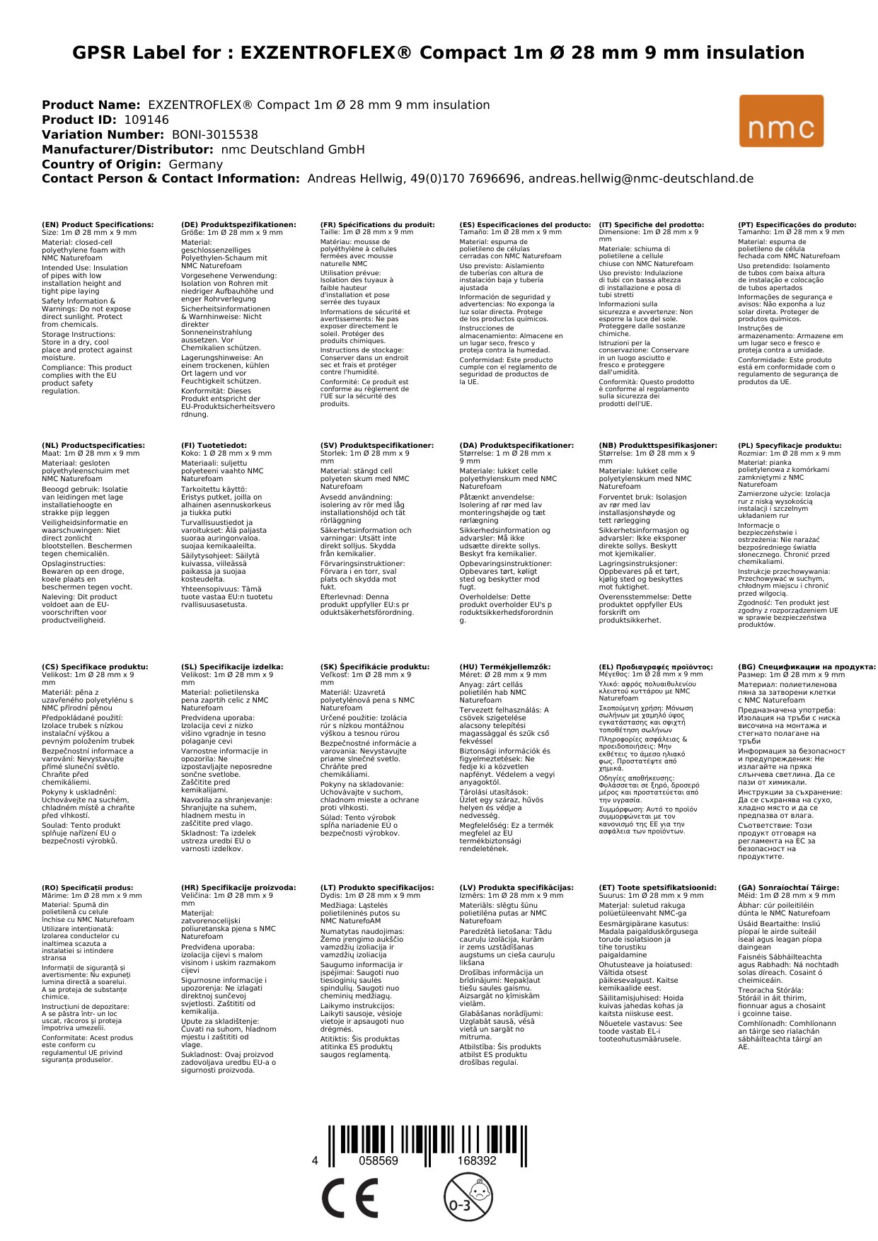 CLIMAFLEX® naturefoam exzentro 1m Ø 28 mm x 9 mm Dämmung