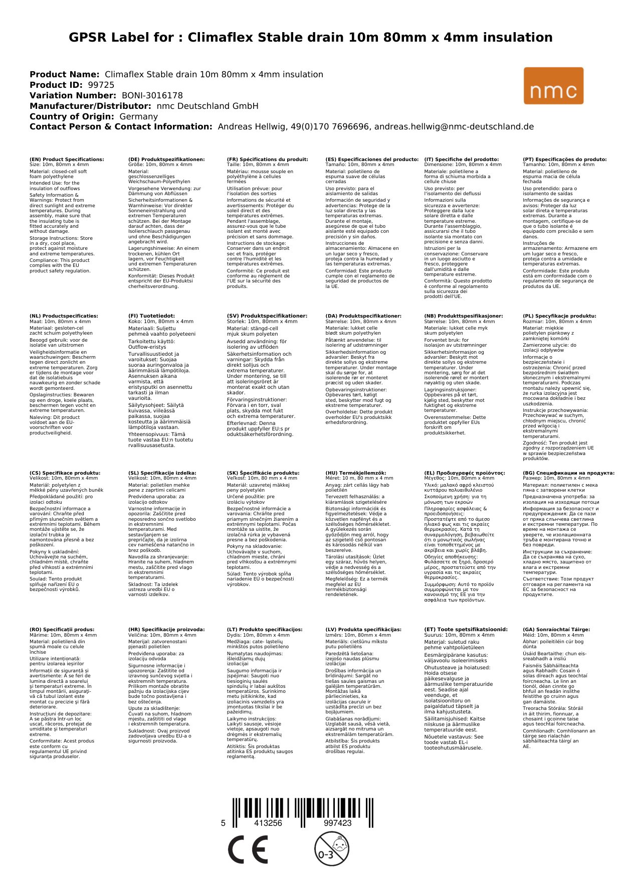 Die Isolierung entspricht der Euroklasse E (EN 13501-1) und ist somit schwer entflammbar.