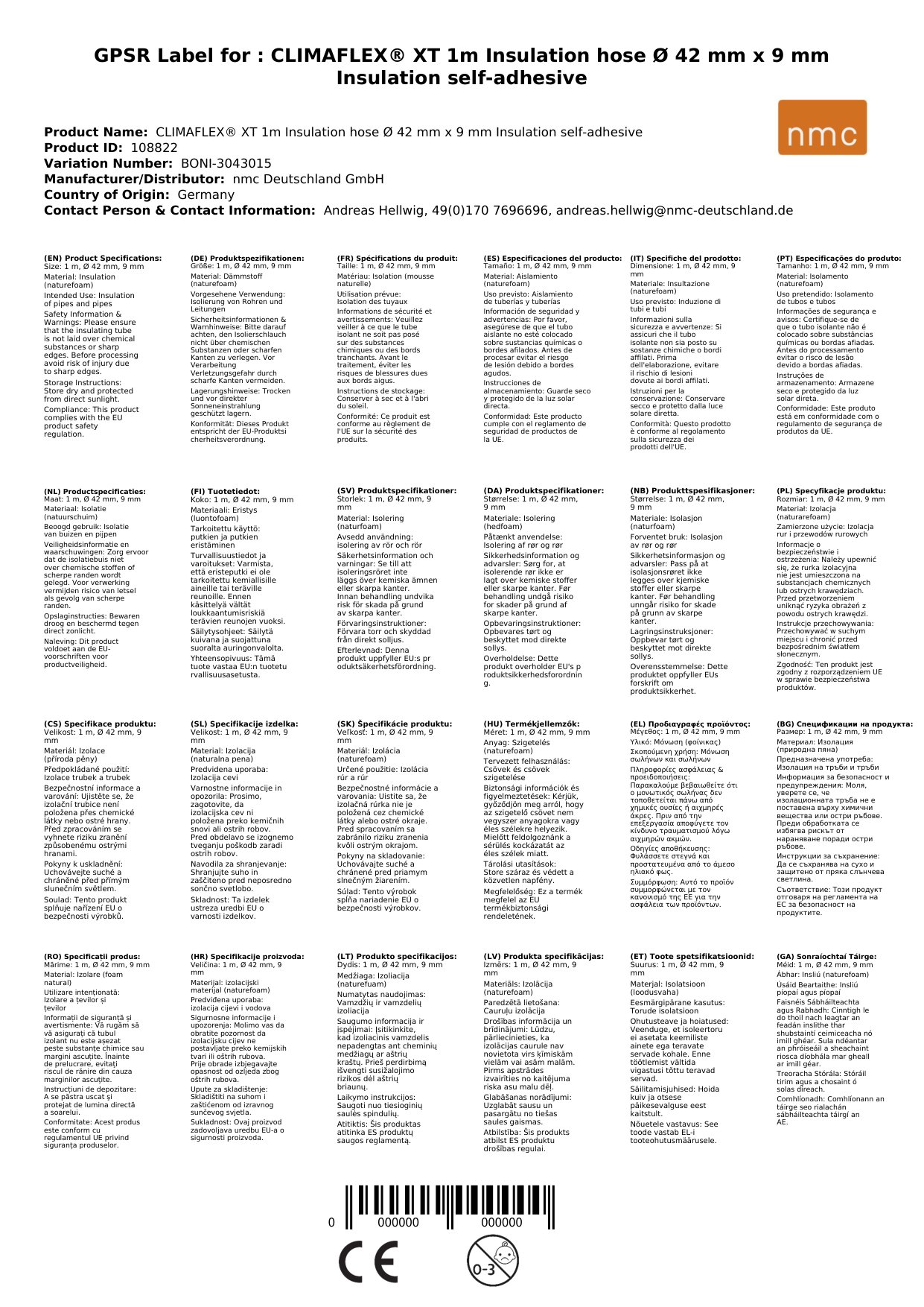 Stellen Sie eine Frage, um mehr über das Produkt zu erfahrenCLIMAFLEX® naturefoam easy 1m Isolierschlauch Ø 42 mm x 9 mm Dämmung selbstklebend