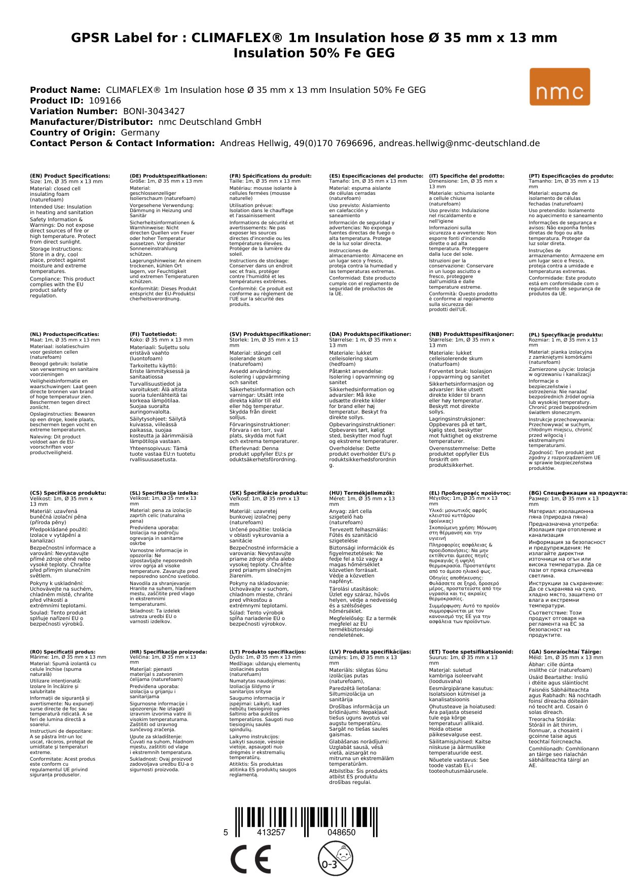 CLIMAFLEX® naturefoam 1m Isolierschlauch Ø 35 mm x 13 mm Dämmung 50% Fe GEG