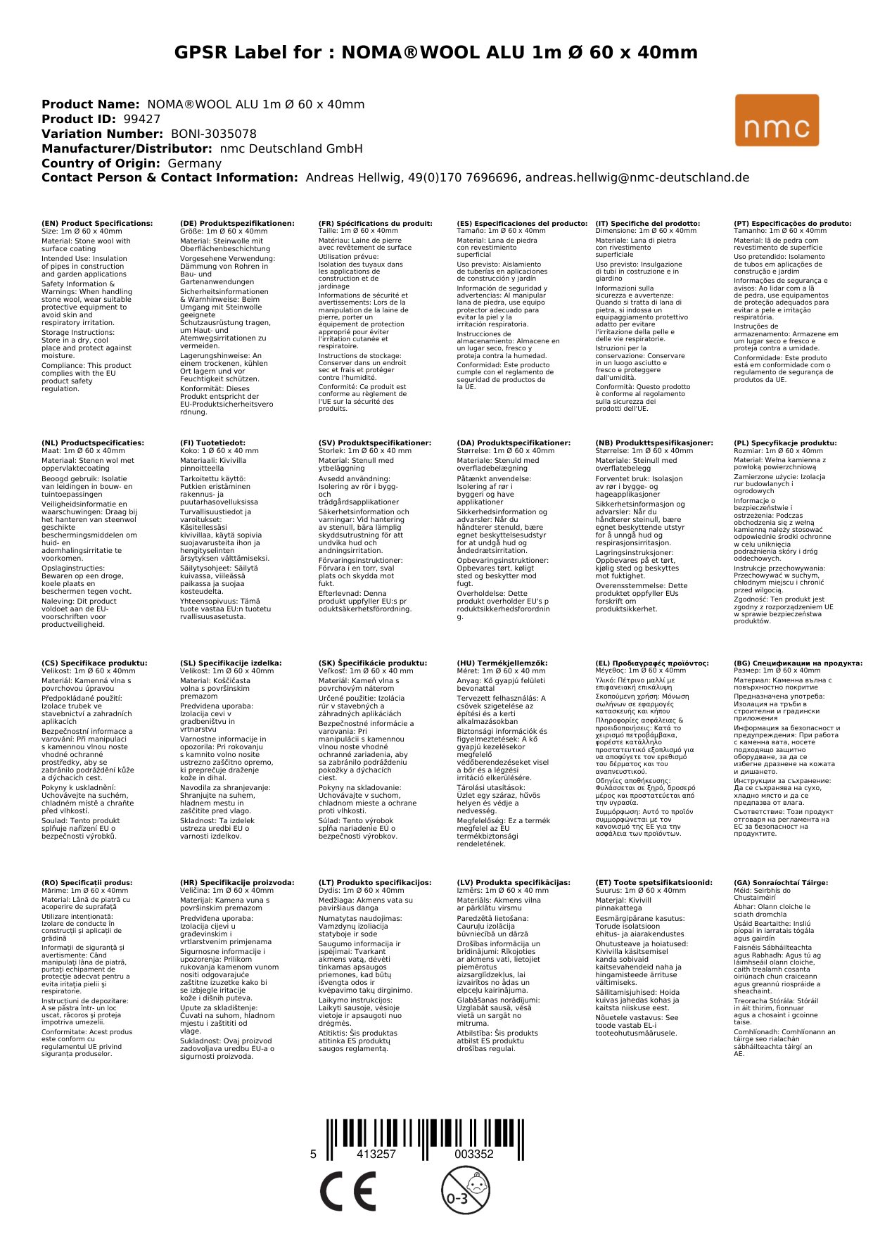 | Material | Steinwolle mit Aluminiumbeschichtung |