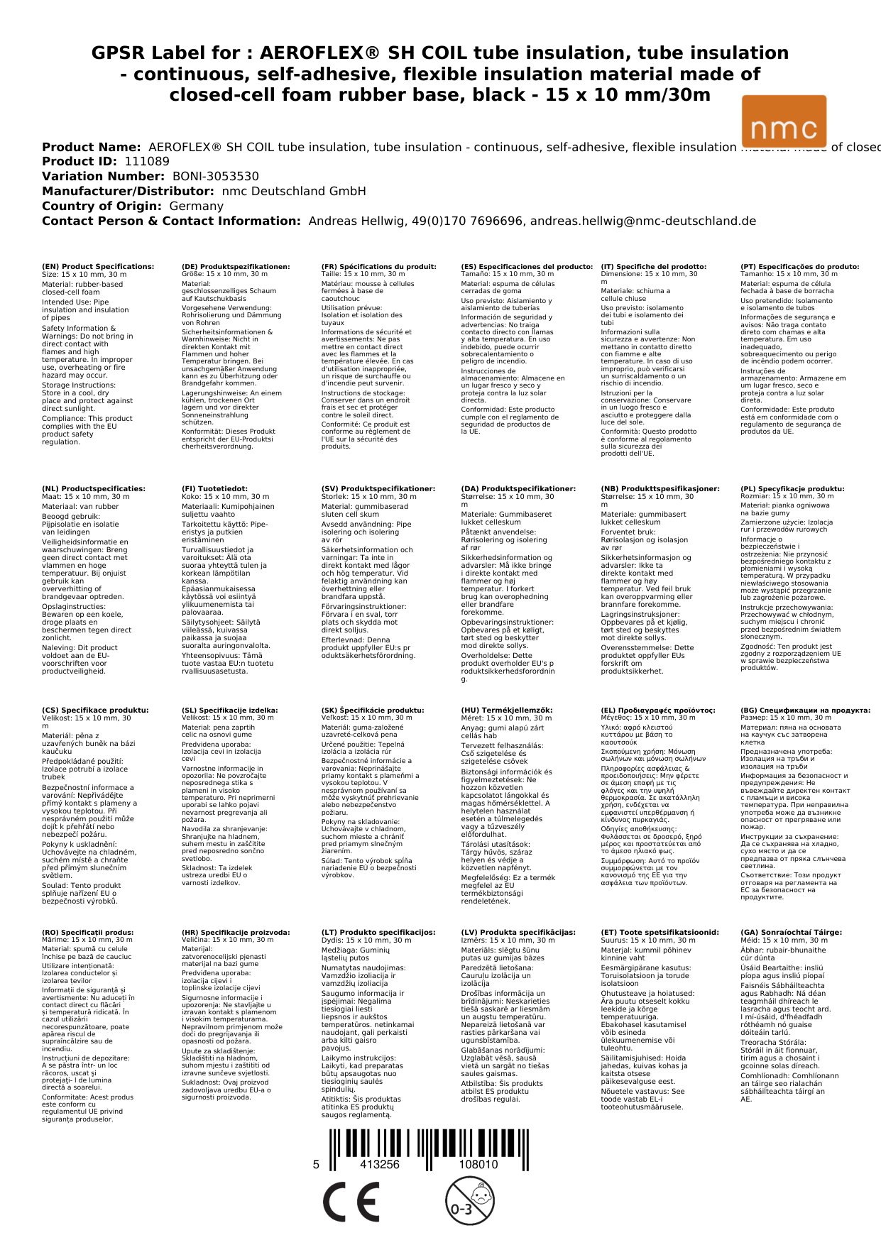 Stellen Sie eine Frage, um mehr über das Produkt zu erfahrenAEROFLEX® SH COIL Rohrisolierung, Rohrdämmung - Endlos, Flexibler Dämmstoff aus geschlossenzelligem Schaum Kautschukbasis, Schwarz
