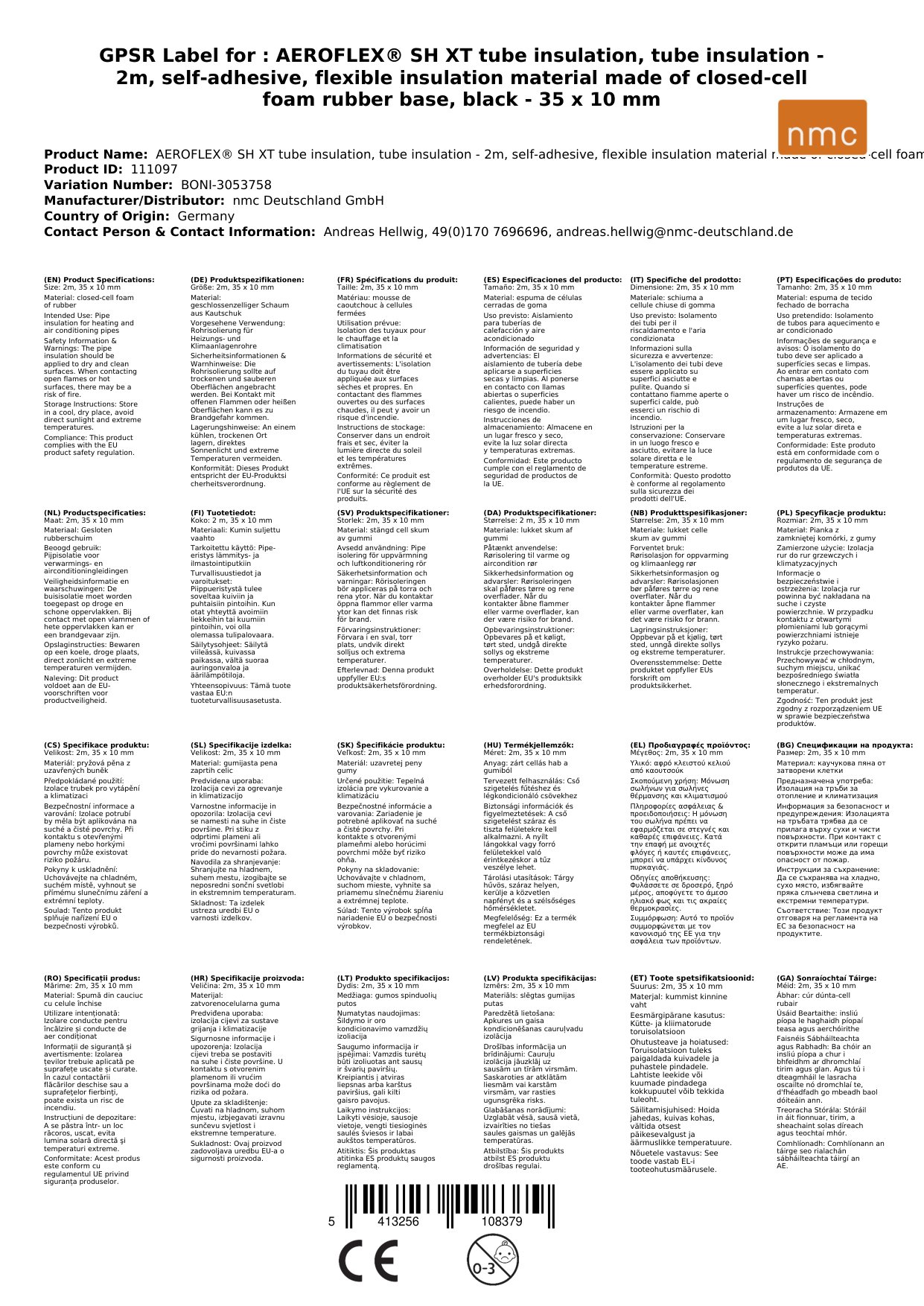 Stellen Sie eine Frage, um mehr über das Produkt zu erfahrenAEROFLEX® SH XT Rohrisolierung, Rohrdämmung - 2m, Selbstklebend, Flexibler Dämmstoff aus geschlossenzelligem Schaum Kautschukbasis, Schwarz