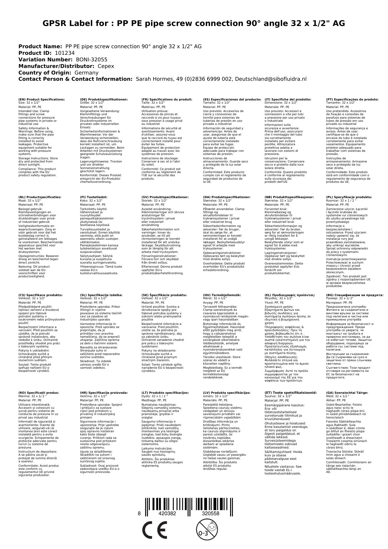 Stellen Sie eine Frage, um mehr über das Produkt zu erfahrenPP PE Rohr Verschraubung 90° Winkel 32 x 1/2" AG