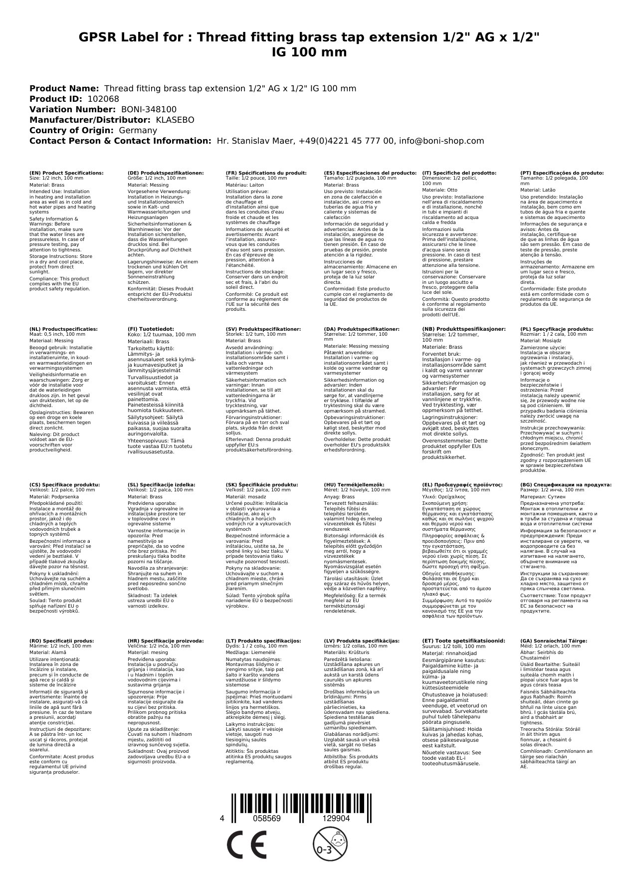 Gewindefitting Messing Hahnverlängerung 1/2" AG x 1/2" IG 100 mm