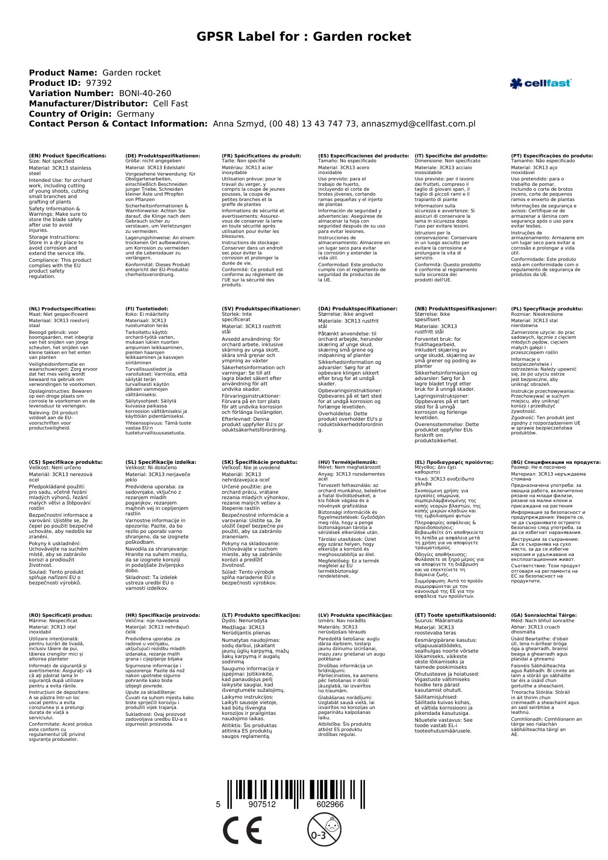 | Brand | Cellfast |