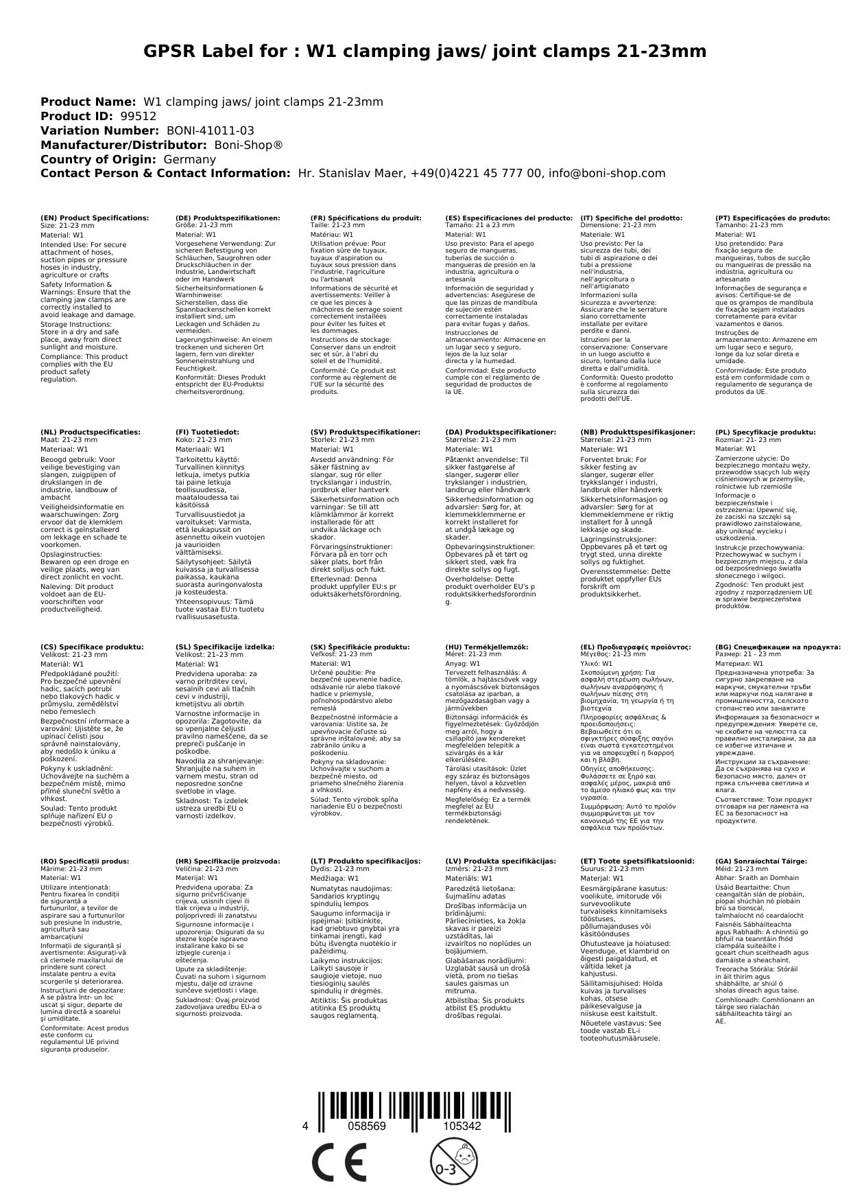 - W2: Band, Gehäuse aus Edelstahl oder gleichwertigem korrosionsbeständigem Stahl gemäß DIN 3017, Schraube Stahl verzinkt