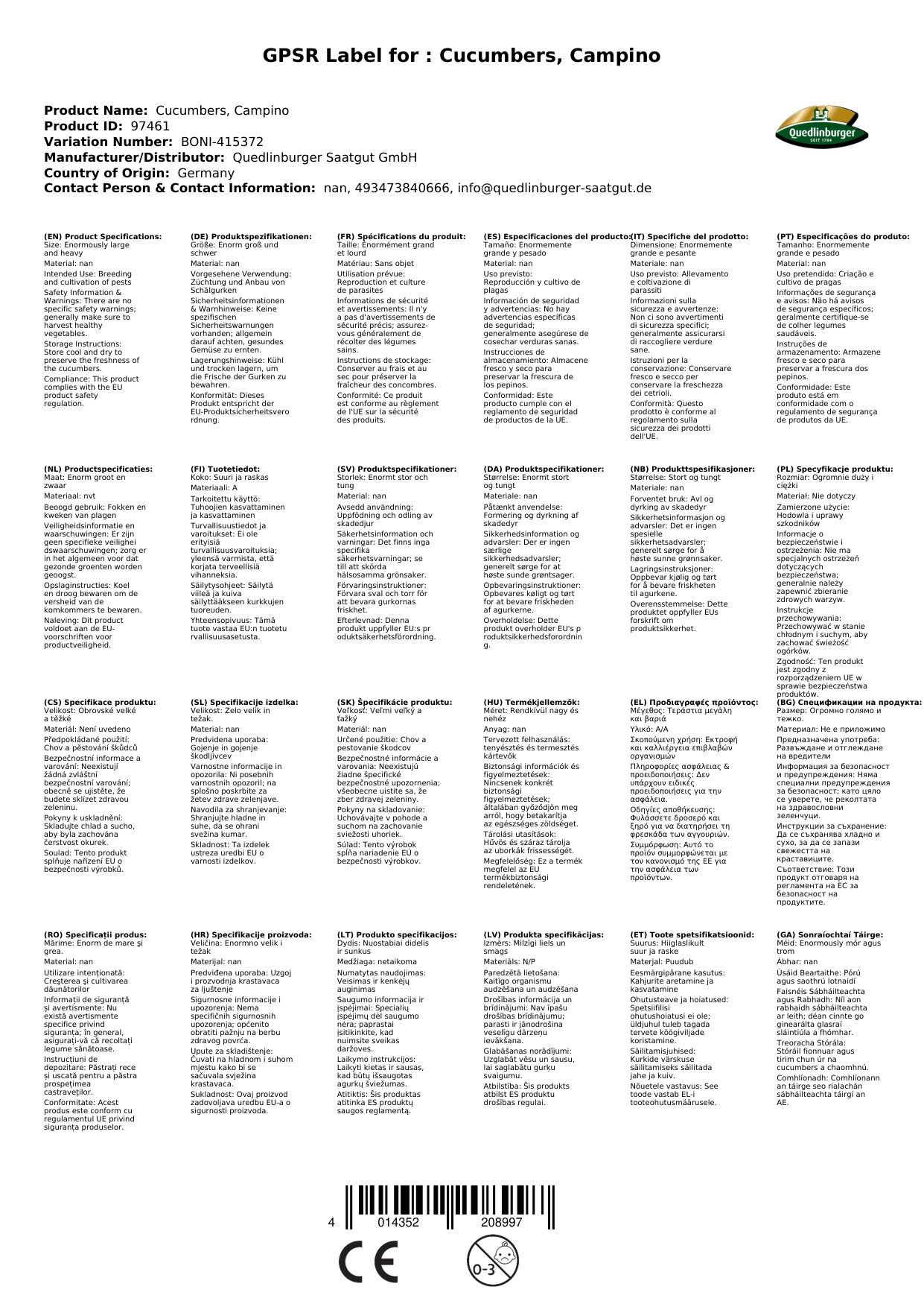 Stellen Sie eine Frage, um mehr über das Produkt zu erfahrenSchälgurke Kampino – Für den Eigenanbau