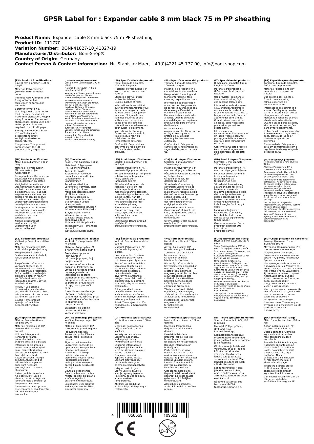 Sie suchen ein robustes und flexibles Seil, um Planen, Netze oder andere Abdeckungen sicher zu befestigen? Unser Expanderseil mit 8 mm Durchmesser, einer Länge von 75 Metern und einer widerstandsfähigen PP-Ummantelung ist die ideale Lösung. Es bietet hohe Festigkeit, UV-Beständigkeit und ist vielseitig einsetzbar. Entdecken Sie die zahlreichen Einsatzmöglichkeiten und profitieren Sie von der hohen Qualität direkt vom Boni-Shop.
