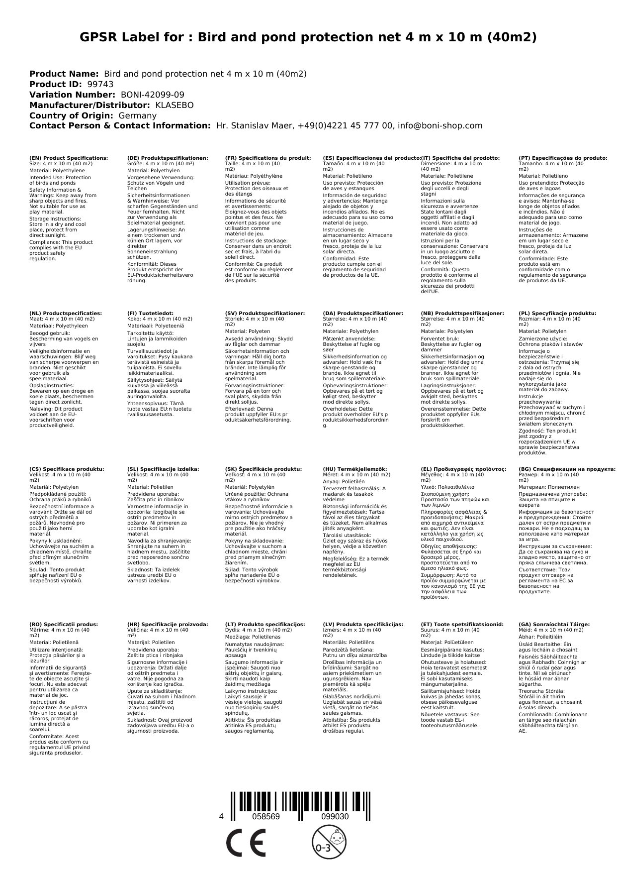 - Reißfest und langlebig: Das Netz ist aus hochwertigem HDPE-Kunststoff gefertigt und daher besonders reißfest und langlebig.