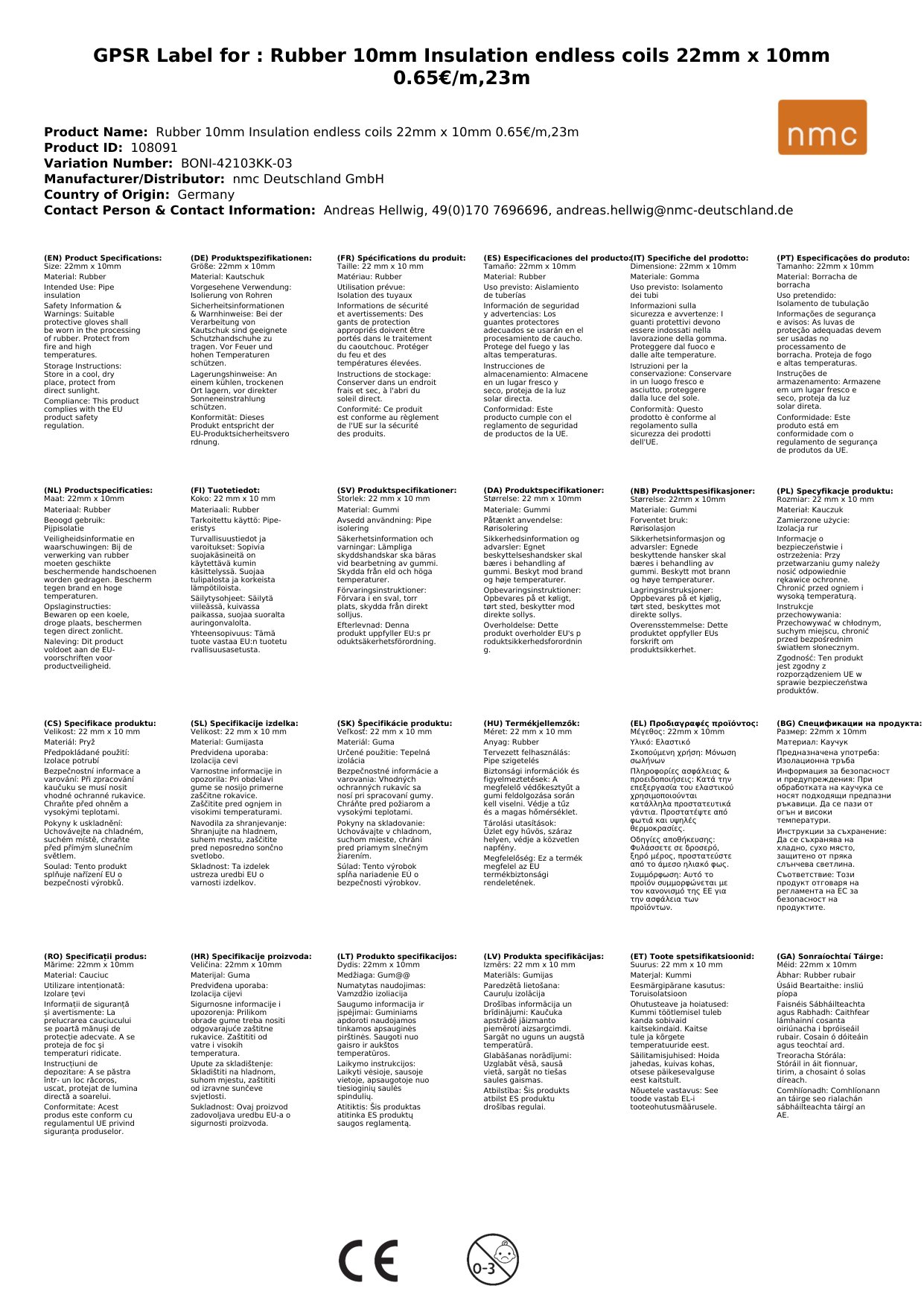 Rohrisolierung Kautschuk, 10mm Isolierung, Endlos Rollen 22mm
