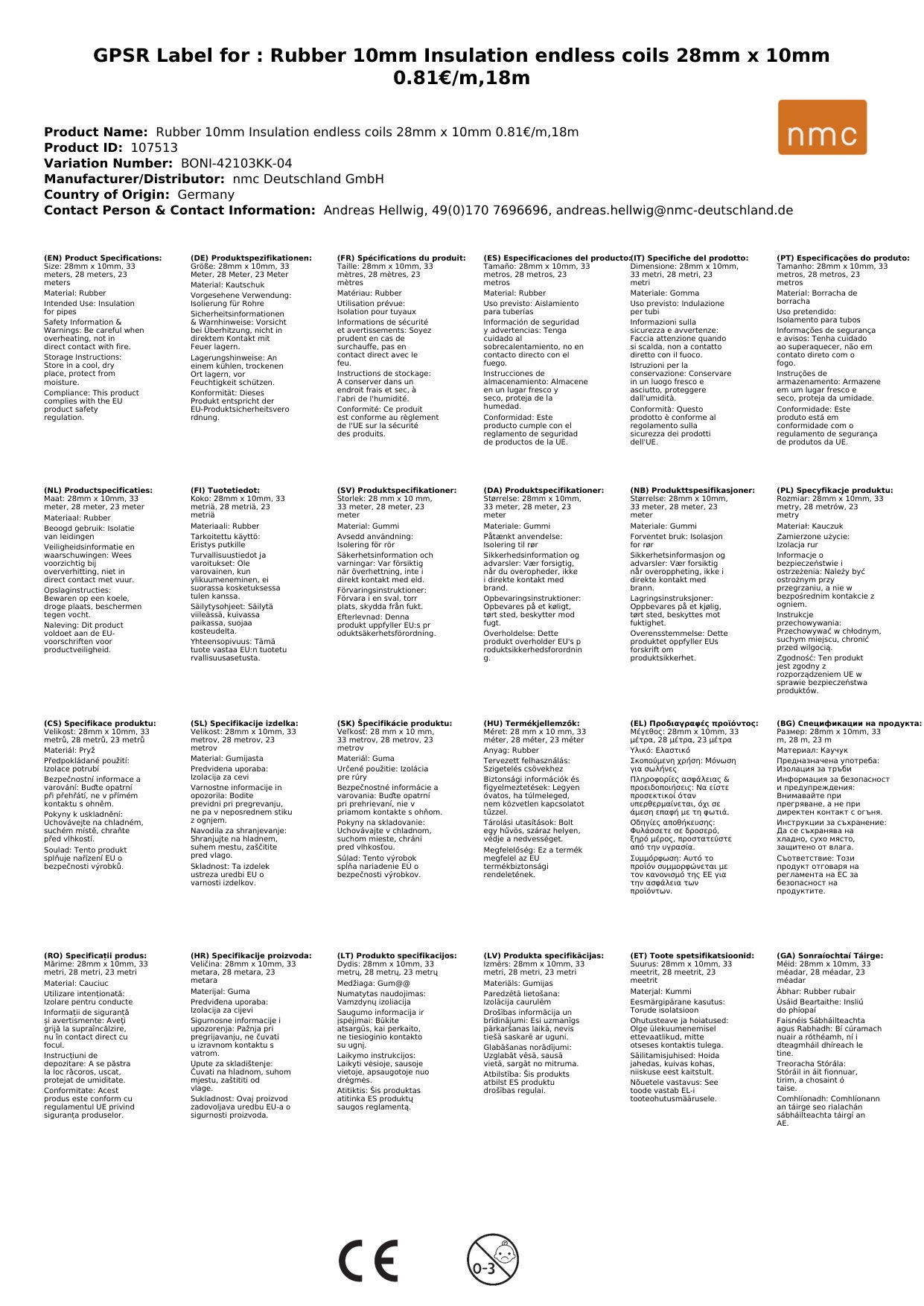 Gummidämmung, 10mm Dämmung, Rohrdämmung, 28mm x 10mm, endlose Rollen, 18m