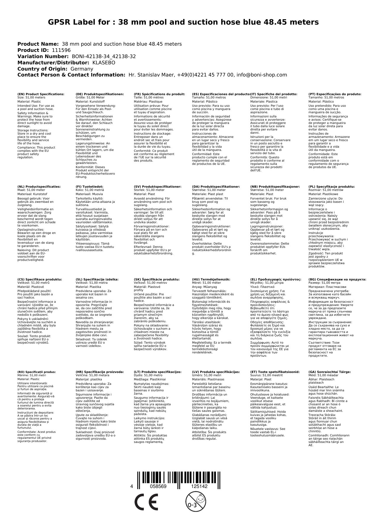 Poolschlauch 38mm, Schwimmbadschlauch, blauer Saugschlauch 48 Meter